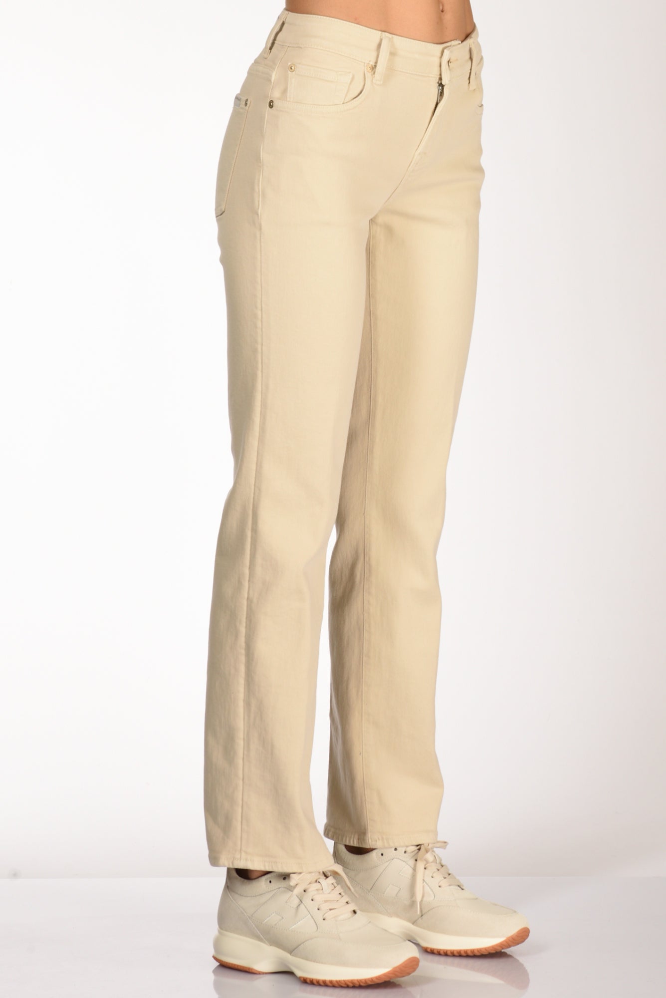 Jeans 5 Tasche Modello Calie Straight, Vita Alta, Gamba Diritta, Chiuso Da Zip E Bottone Logato, Vestibilita' Regular, Made In Tunisia, Composizione 81 Cotone,11 Lyocell, 6 Elastomultiestere, 2 Elastan