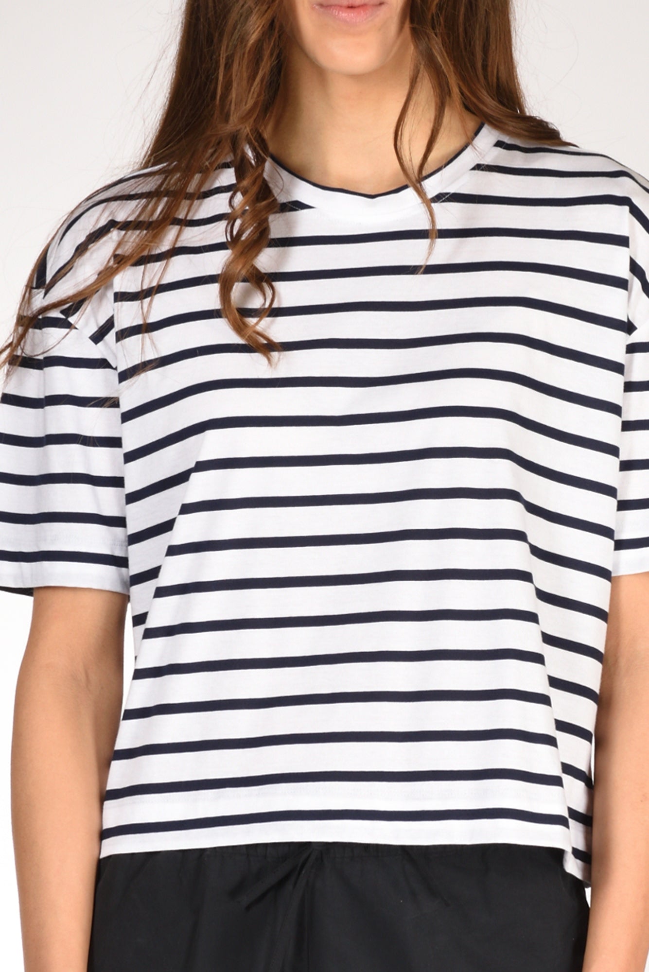 Maglia Giroccollo Rigata, Spalla Scesa, Manica Al Gomito, Linea Boxy, Vestibilita' Morbida, Made In Cina, Composizione 100 Cotone