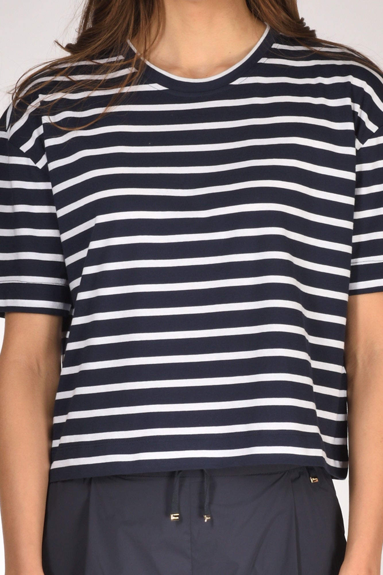 Maglia Giroccollo Rigata, Spalla Scesa, Manica Al Gomito, Linea Boxy, Vestibilita' Morbida, Made In Cina, Composizione 100 Cotone