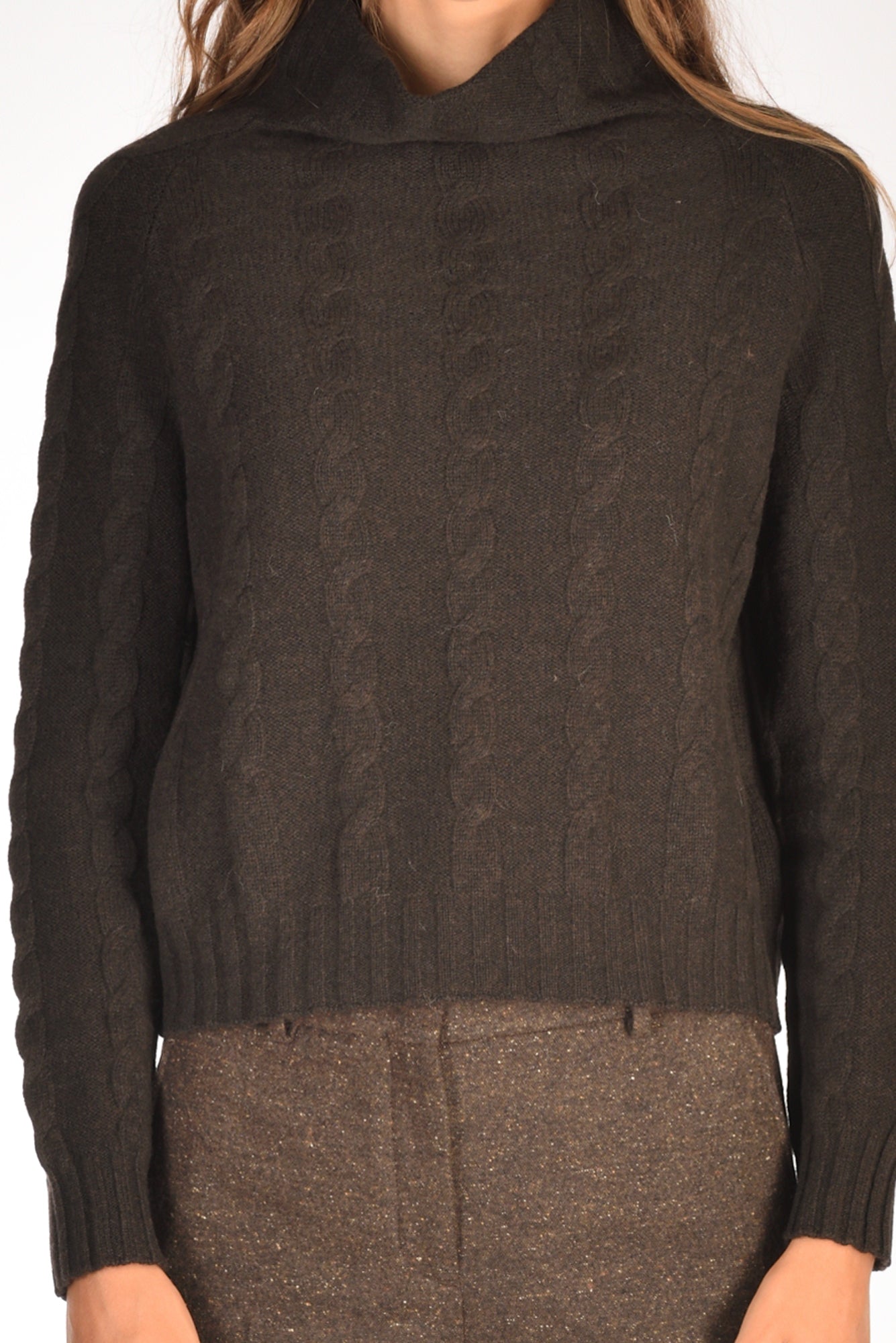 Maglia Collo A Cratere, Manica Raglan, Lavorazione A Trecce, Bordo E Polsi Lavorati A Coste, Vestibilita' Regular, Made In Italy, Composizione 90 Lana, 10 Cachemire