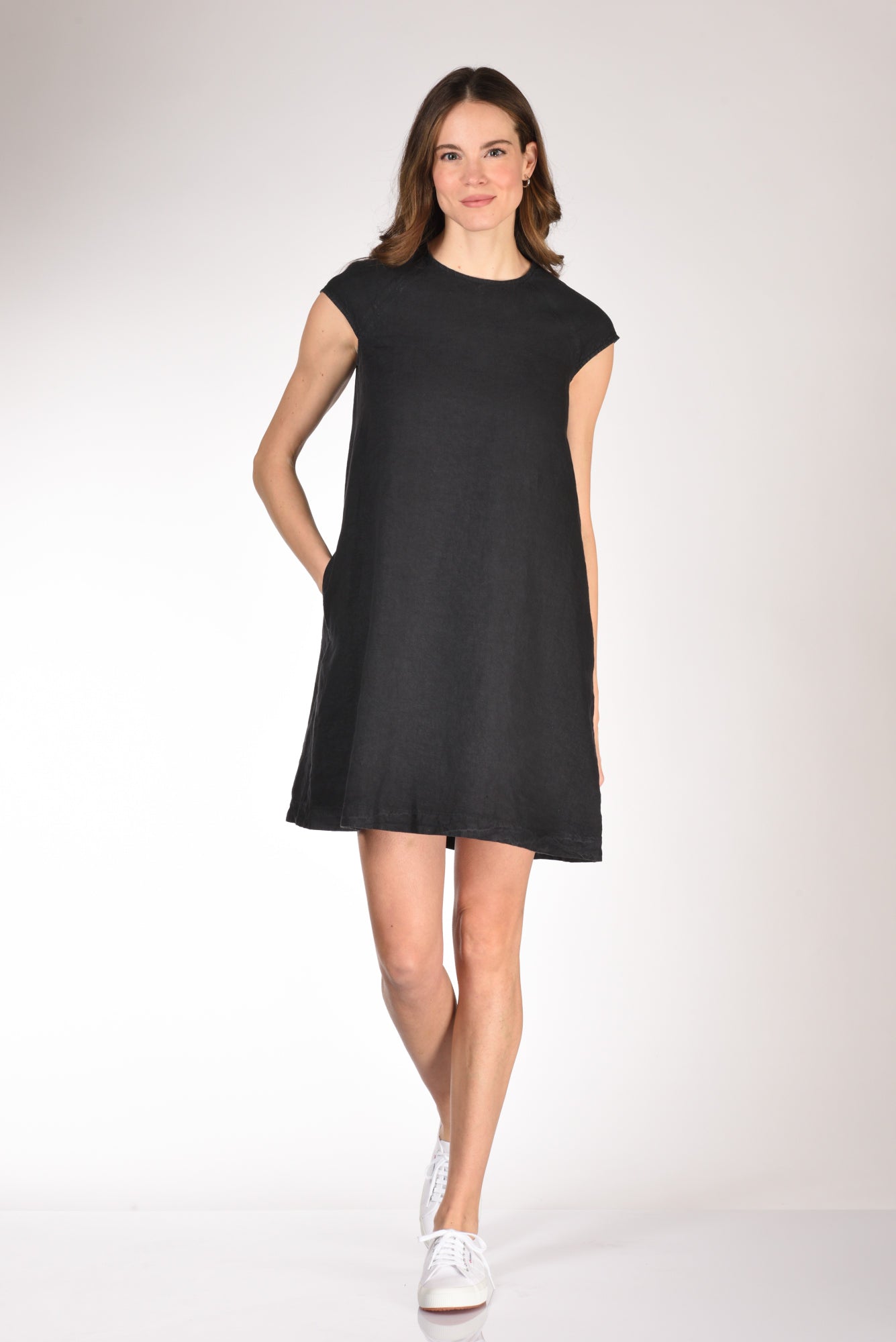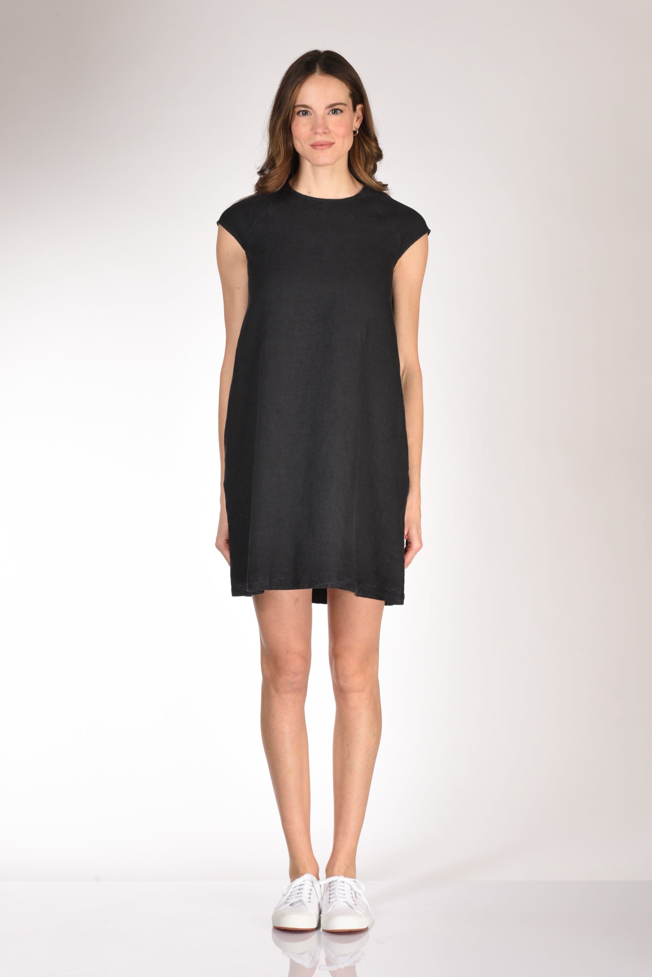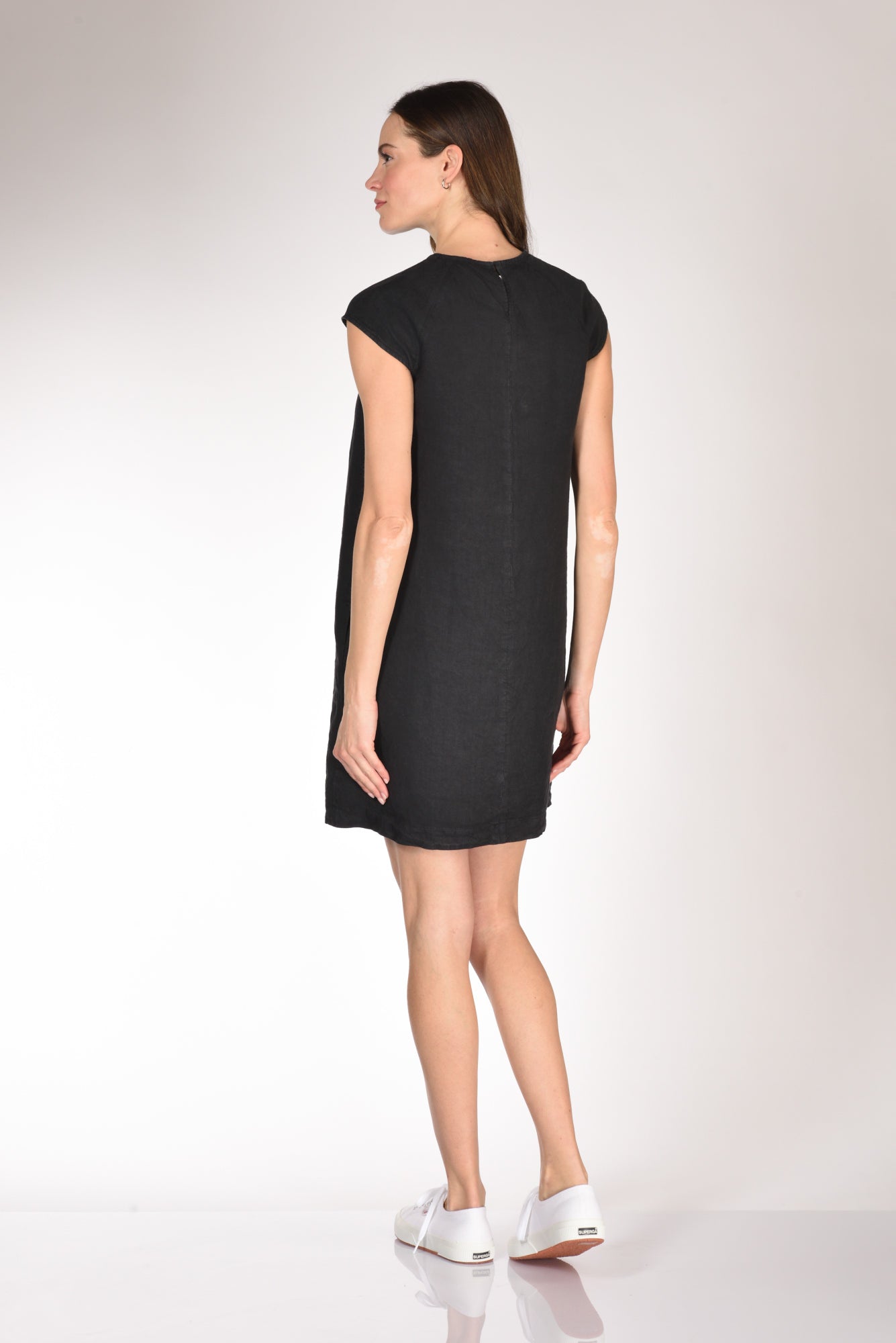 Abito Dalla Linea Ad A, Manica Ad Aletta, Tasche Laterali Inserite, Scollo Posteriore A Goccia Chiuso Da Bottone Ed Asola Volante, Vestibilita' Regular, Composizione 100 Lino, Made In Italy