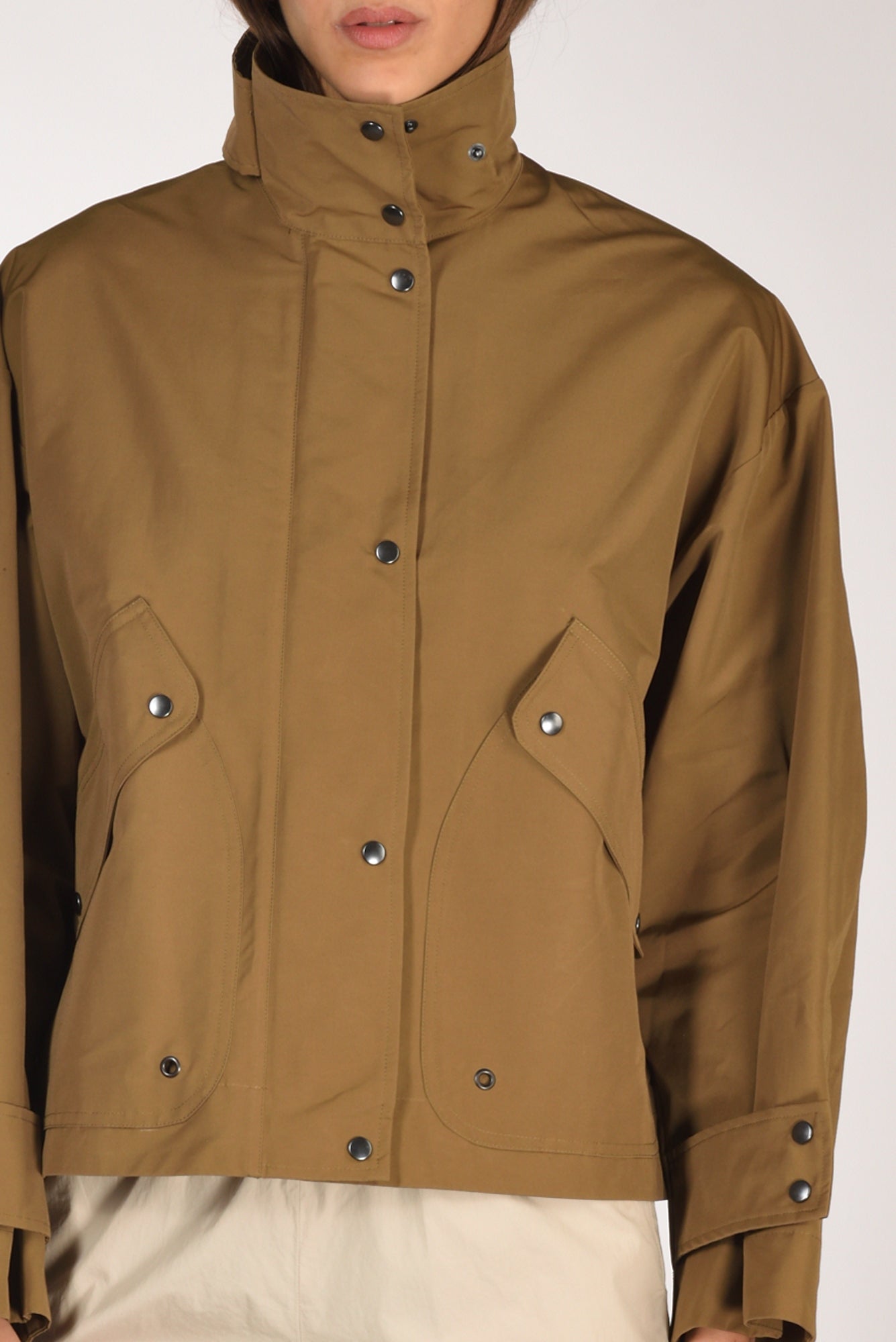 Giacca Sfoderata, Realizzata In Tela Di Cotone Anti Goccia, Collo In Piedi Con Alamaro Chiuso Da Bottone Automatico, Tasche Applicate Con Patta E Bottoni Automatici, Doppia Chiusura Con Zip Nascosta E Bottoni Automatici, Spalla Scesa, Manica Lunga Con Alamaro Al Polso, Linea Diritta, Vestibilita' Over, Made In Italy, Composizione 53 Cotone, 47 Poliestere