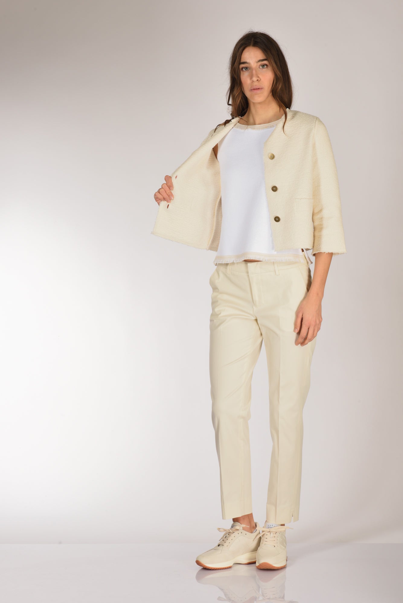 Giacca Girocollo Modello 'chanel', Maniche 3/4, Finte Tasche Frontali, Chiusura Bottoni Metallici A Vista, Vestibilita' Regular, Made In Italy, Composizione 61 Cotone, 39 Poliammide
