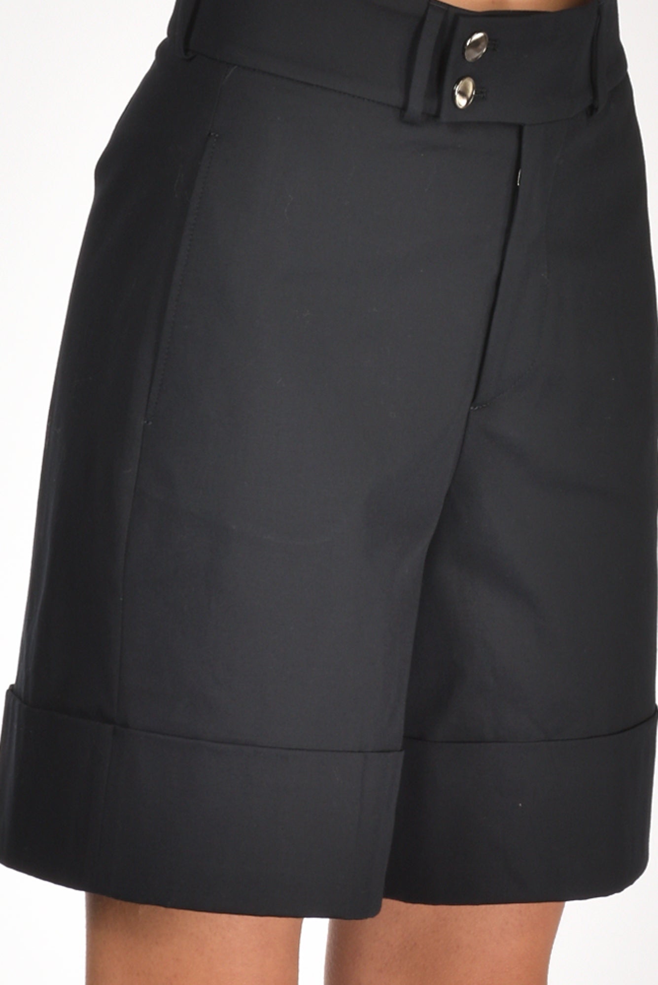 Bermuda A Vita Alta, Passanti In Vita, Tasche Laterali Inserite, Chiuso Da Zip Nascosta E Bottoni Di Metallo A Vista, Gamba Larga, Risvolto H Cm 9, Vestibilita' Regular, Composizione 96 Cotone, 4 Elastan, Made In Italy
