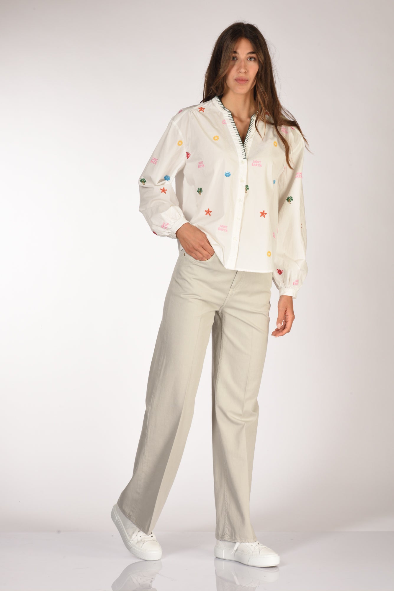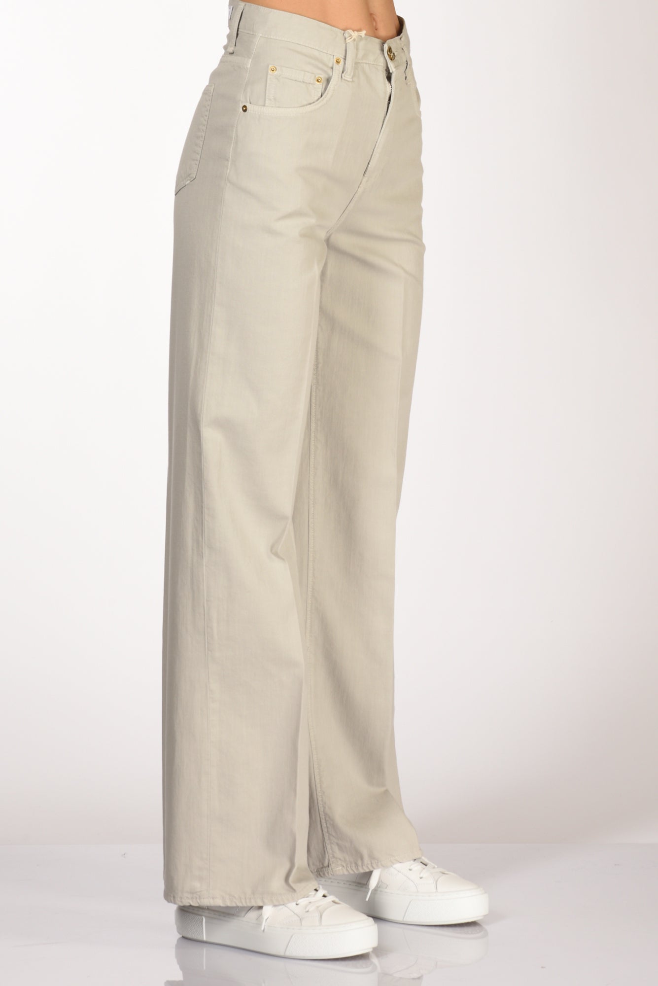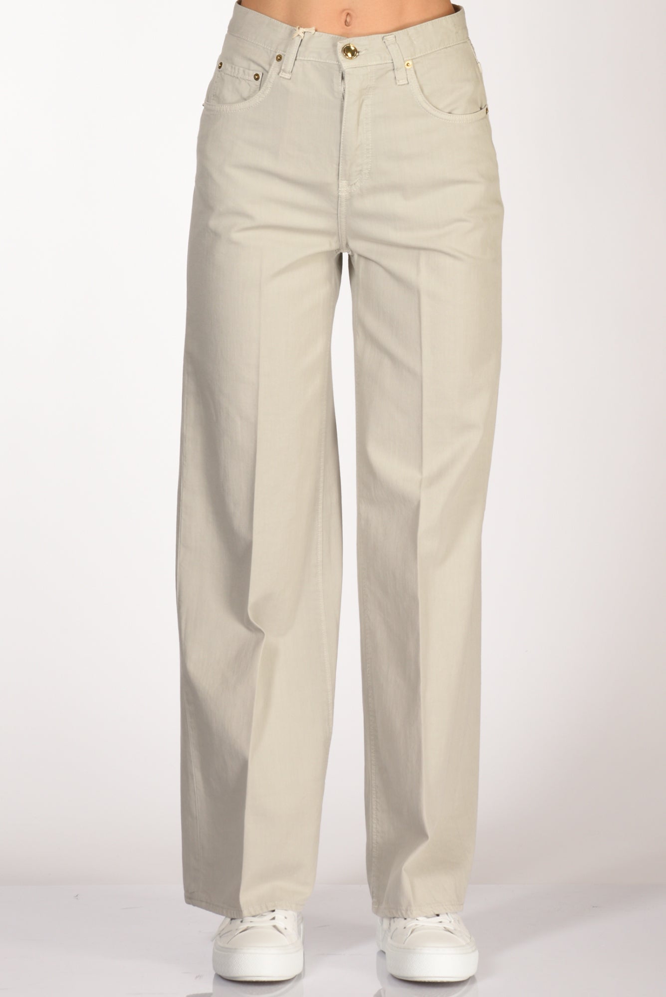 Pantaloni 5 Tasche, Vita Alta, Gamba Larga, Passanti In Vita, Chiusi Da Zip E Bottone Gioiello, Vestibilita' Regular, Composizione 100 Cotone, Made In Italy