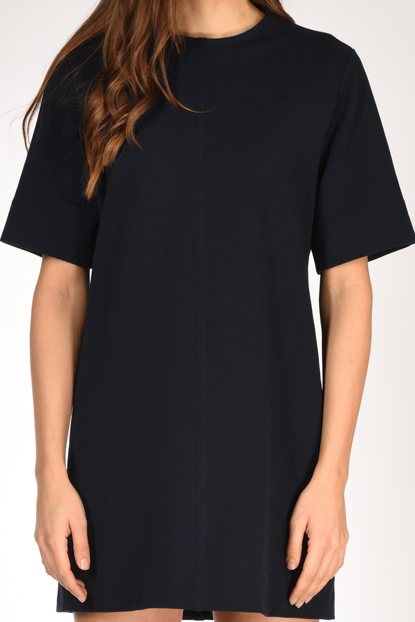 Abito Girocollo Realizzato In Tessuto Jersey, Manica Al Gomito, Sfoderato, Chiusura Posteriore A Goccia Con Bottone Ed Asola Volante, Linea Diritta, Cucutura Centrale Fronte E Retro, Vestibilita' Regular, Made In Romania, Composizione 93 Cotone, 7 Lycra