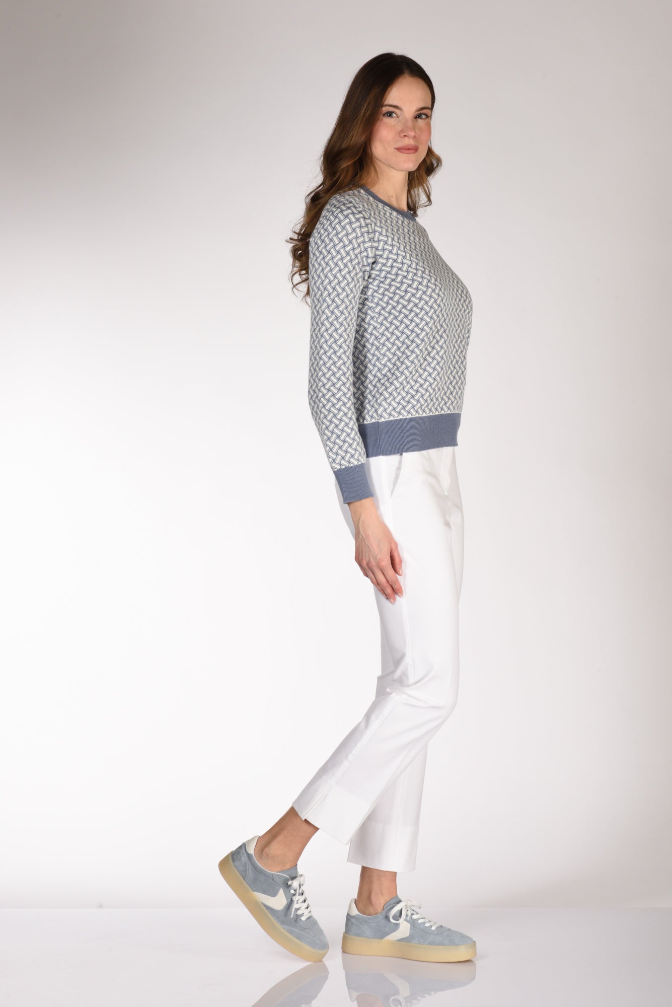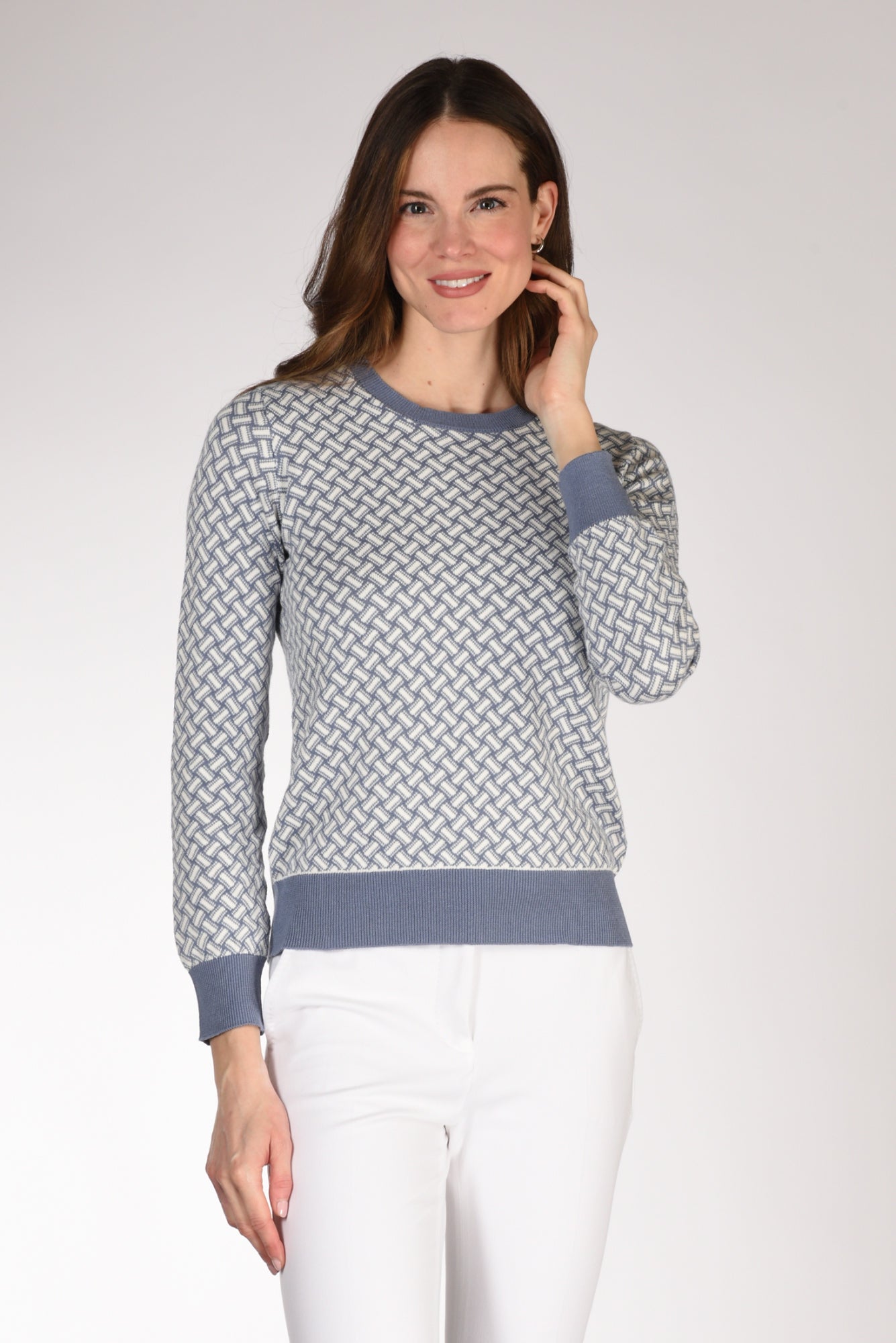 Maglia Girocollo, Disegno Biscottino, Bordi, Collo E Polsi Lavorati A Coste, Vestibilita' Regular, Made In Italy, Composizione 60 Cotone 40 Lino