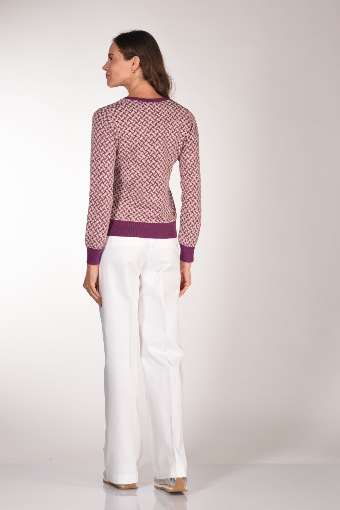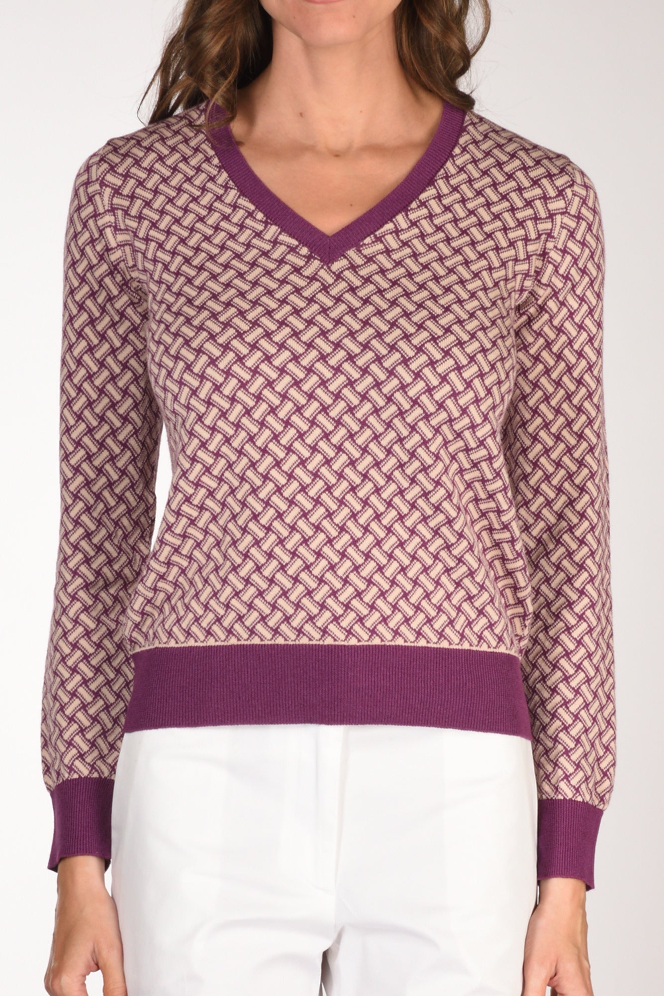 Maglia Scollo A V, Disegno Biscottino, Bordi, Collo E Polsi Lavorati A Coste, Vestibilita' Regular, Made In Italy, Composizione 60 Cotone 40 Lino