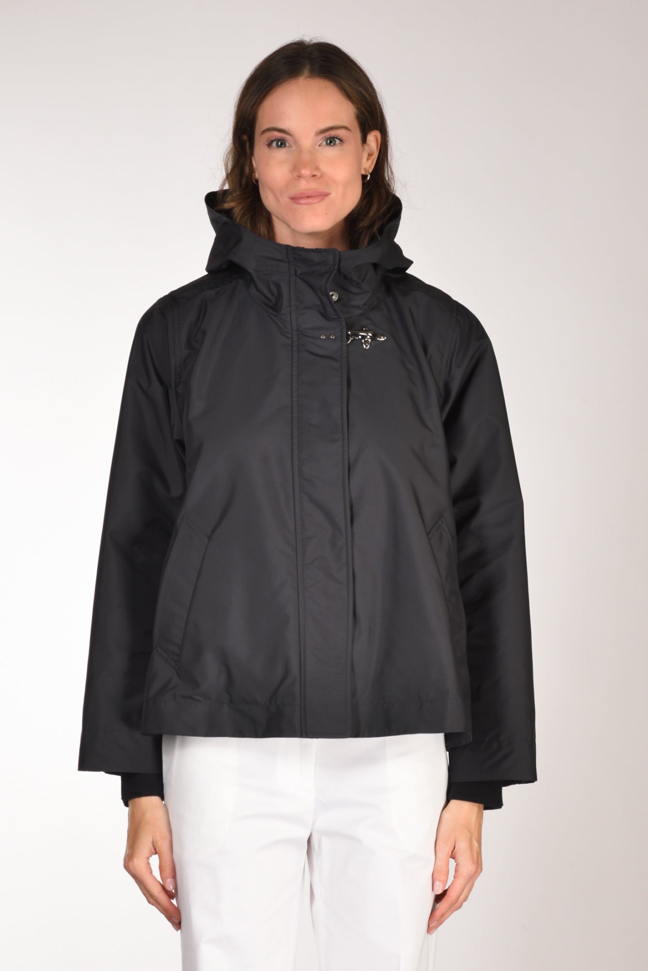Parka Corto Con Cappuccio, Linea Svasata, Fondo Con Coulisse, Doppia Chiusura Con Zip Nascosta, Bottoni Automatici Ed Iconico Gancio Fay, Tasche Inclinate A Filettone, Parzialmente Foderato, Antigoccia, Made In Italy, Composizione 100 Poliestere, Fodera 62 Acetato, 38 Poliestere