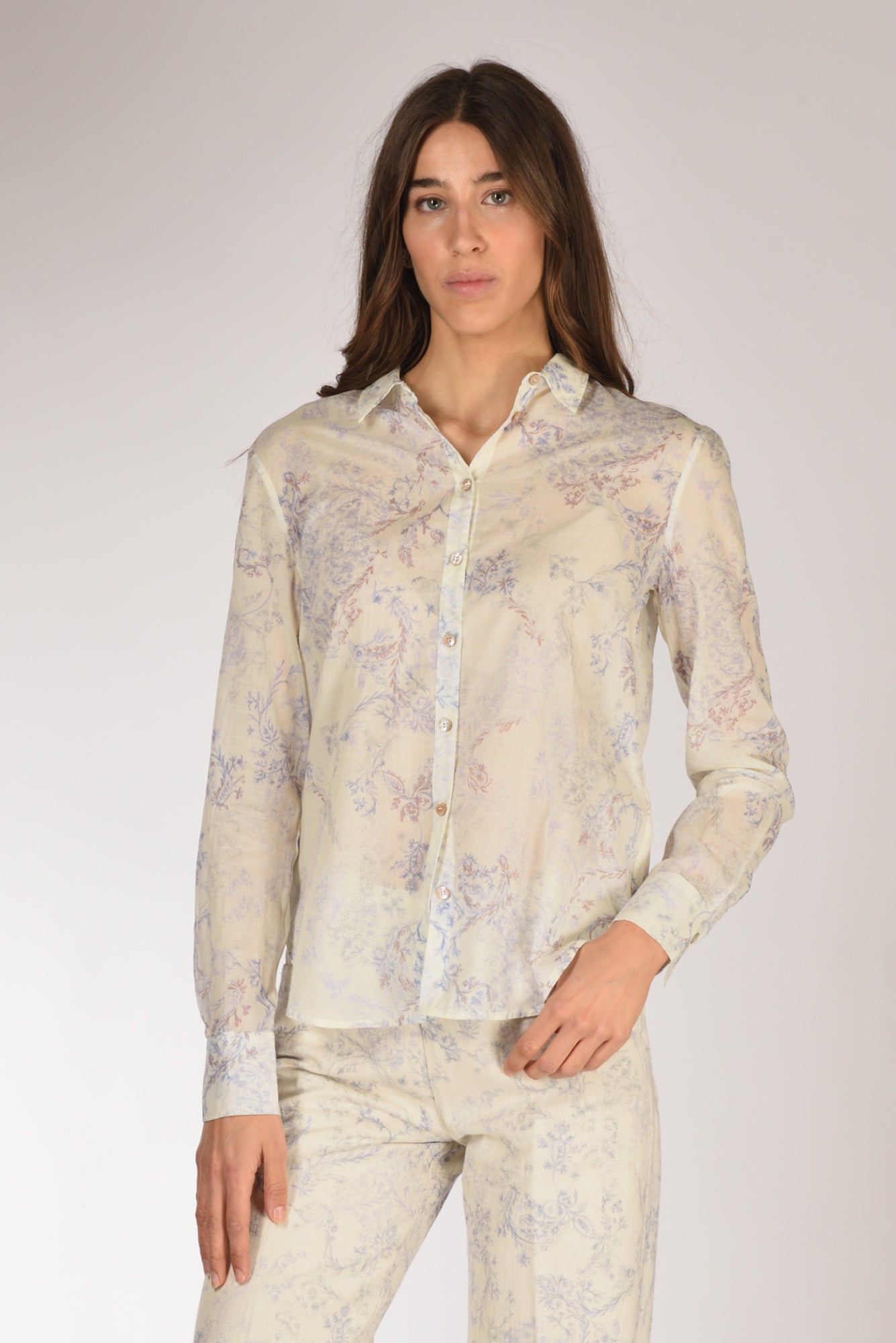 Camicia Stampa 'non Ti Scordar Di Me', Colletto All'italiana, Spalla Scesa, Maniche Lunghe Con Polso Alto Ad Un Bottone, Chiusa Da Bottoni In Madreperla A Vista, Fondo Stondato, Vestibilita' Regular, Made In Italy, Composizione 100 Cotone.