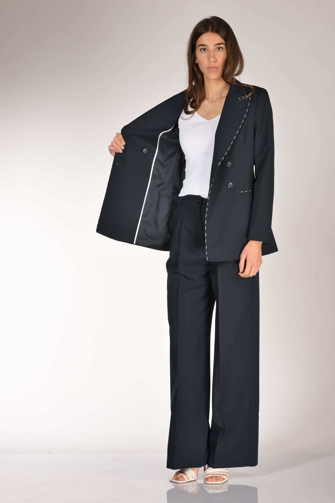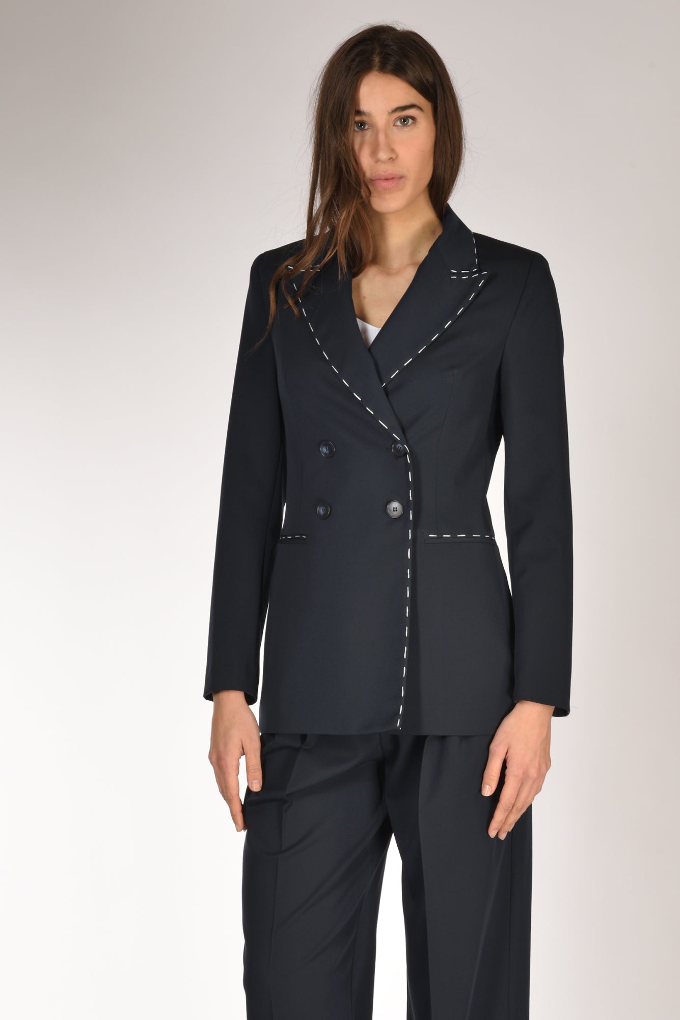 Giacca 7/8 Doppiopetto, Impreziosita Da Mpunture A Contrastu, Rever A Lancia, Tasche Frontali A Filetto, Chiusa Da Bottoni A Vista, Foderata, Vestibilita' Regular, Made In Italy, Composizione 75 Poliestere, 19 Viscosa, 6 Elastan, Fodera 100 Polietsre