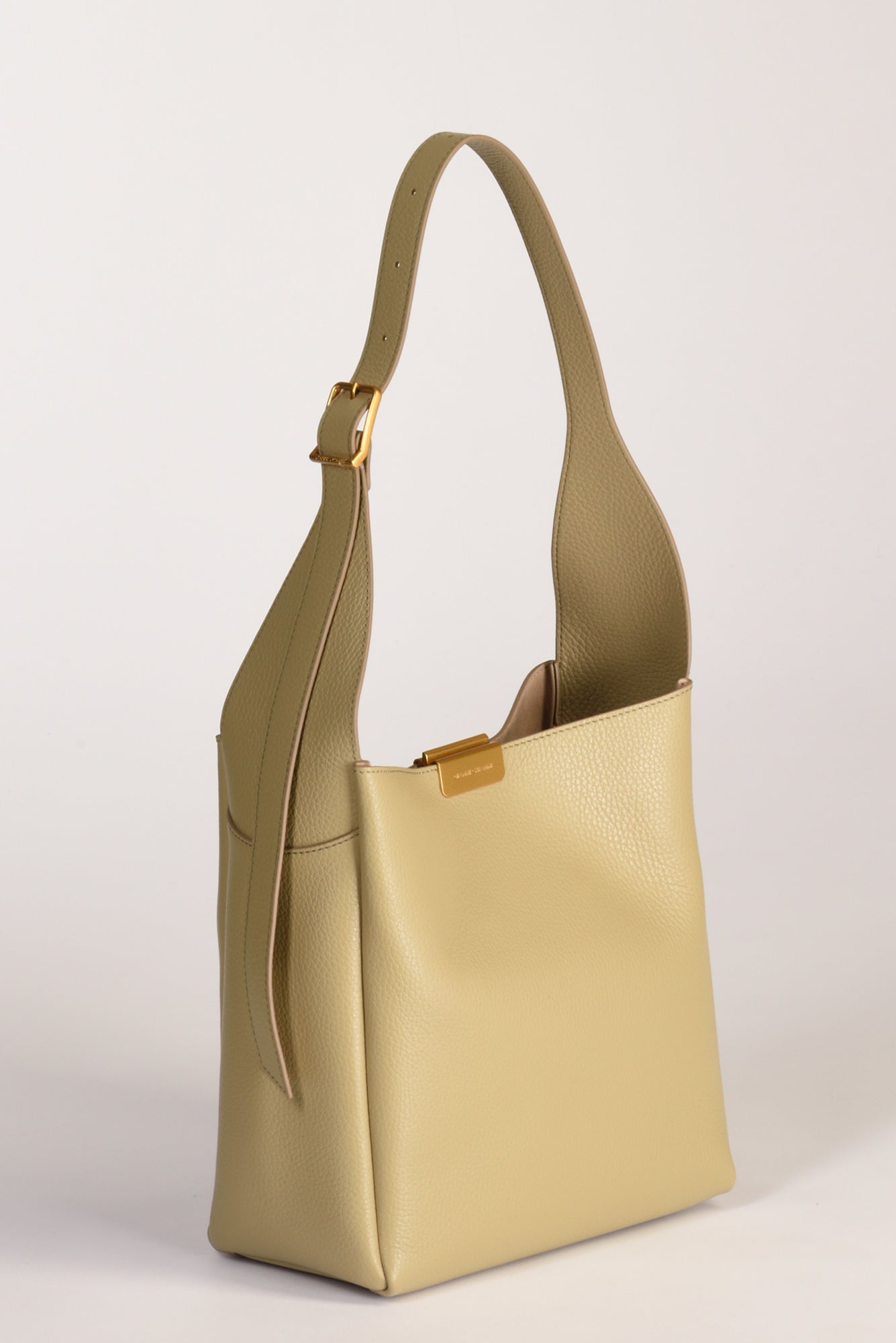 Borsa A Spalla Realizzata In Pelle Martellata, Spallaccio Regolabile, Chiusura Metallica A Scatto, Sfoderata, Internamente Presenta Due Tasche Laterali, Composizione 100 Pelle, Made In Italy, Dimensioni 25x12x26