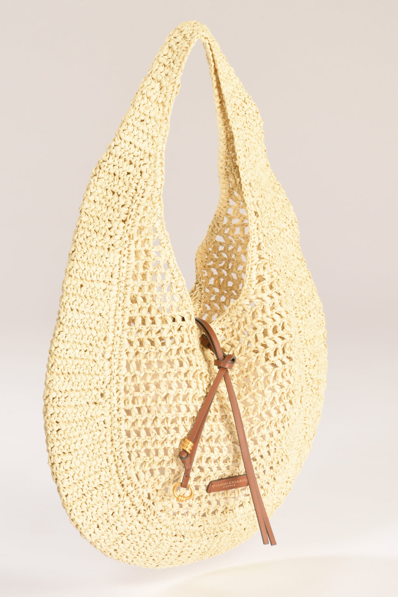 Borsa Hobo Realizzata In Paglia Crochet, Chiusa Da Cordoncino In Pelle Con Dettaglio Metallico, Dimensione Cm 43x40x12, Made In Cina, Composizione 100 Paglia