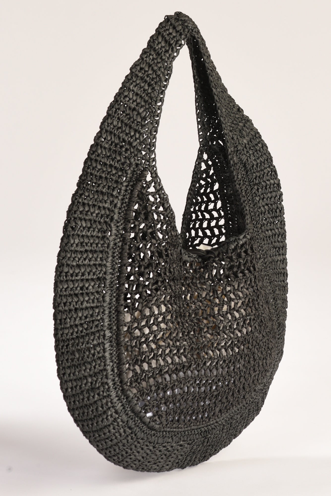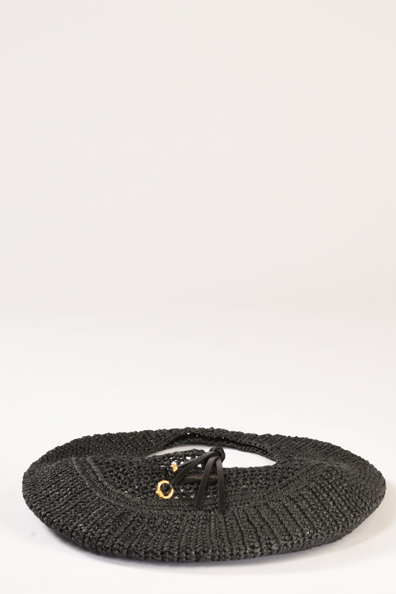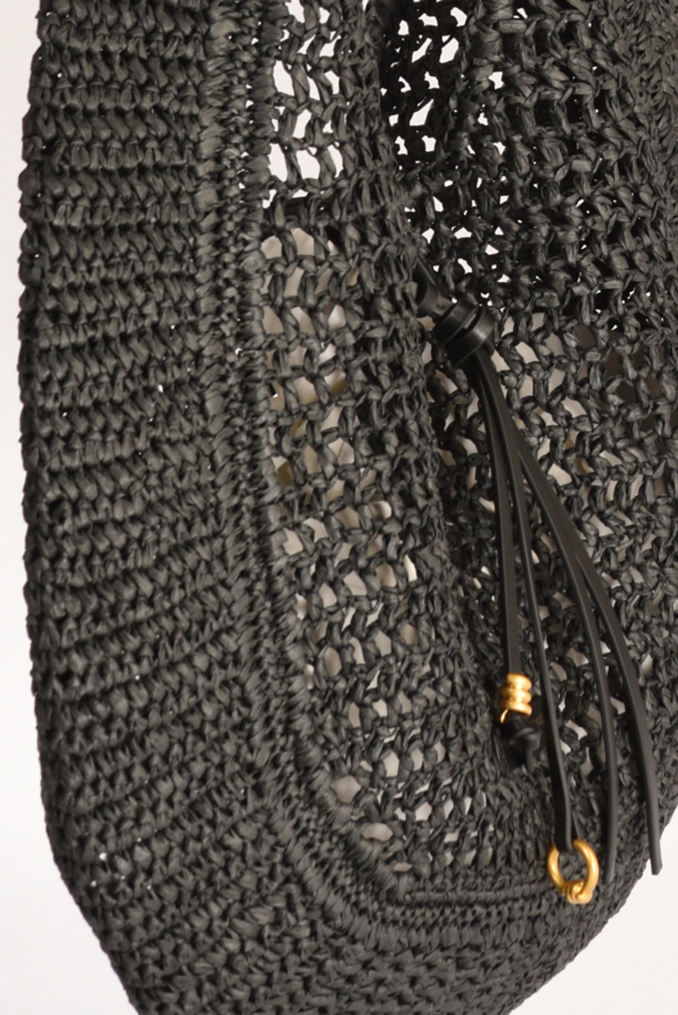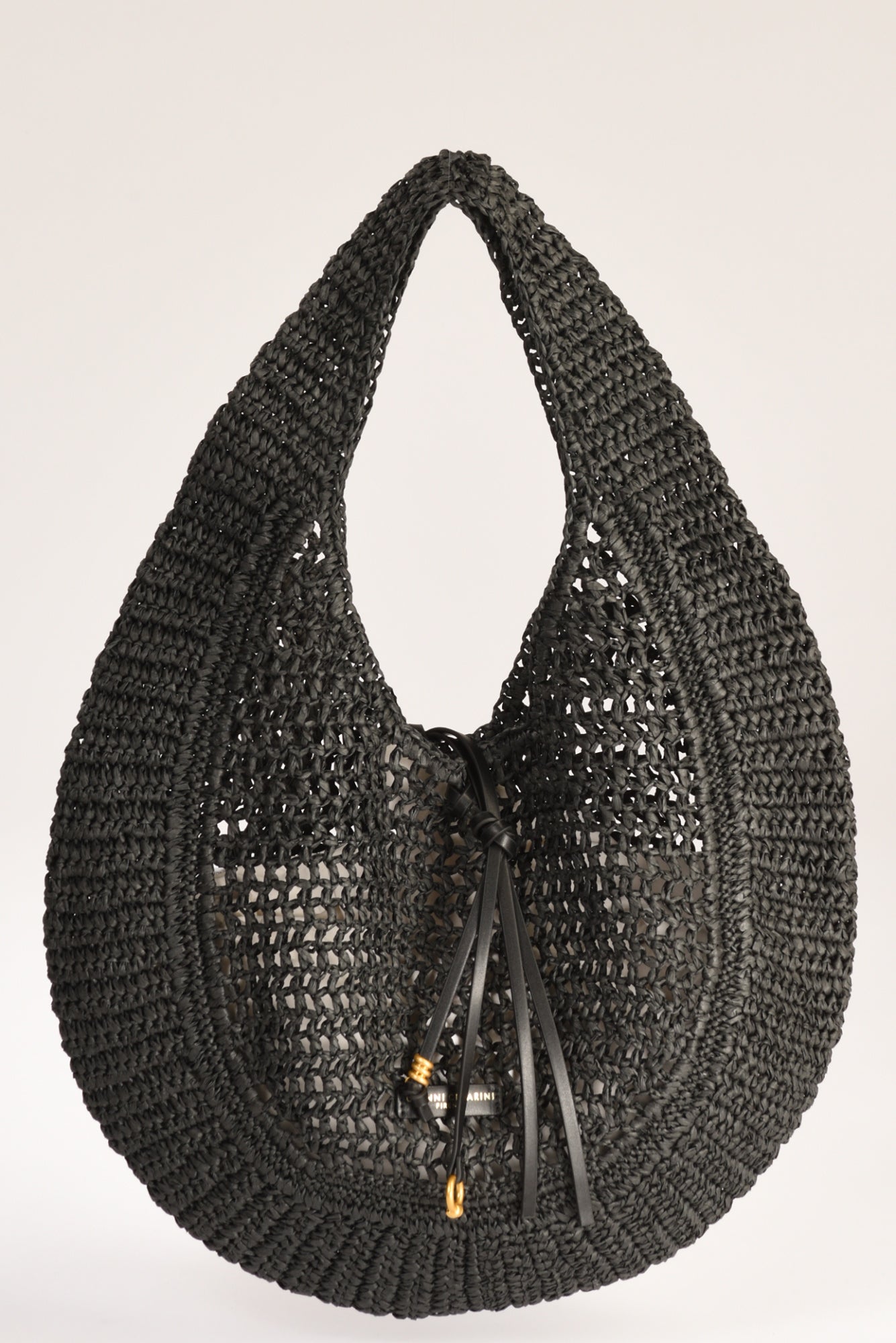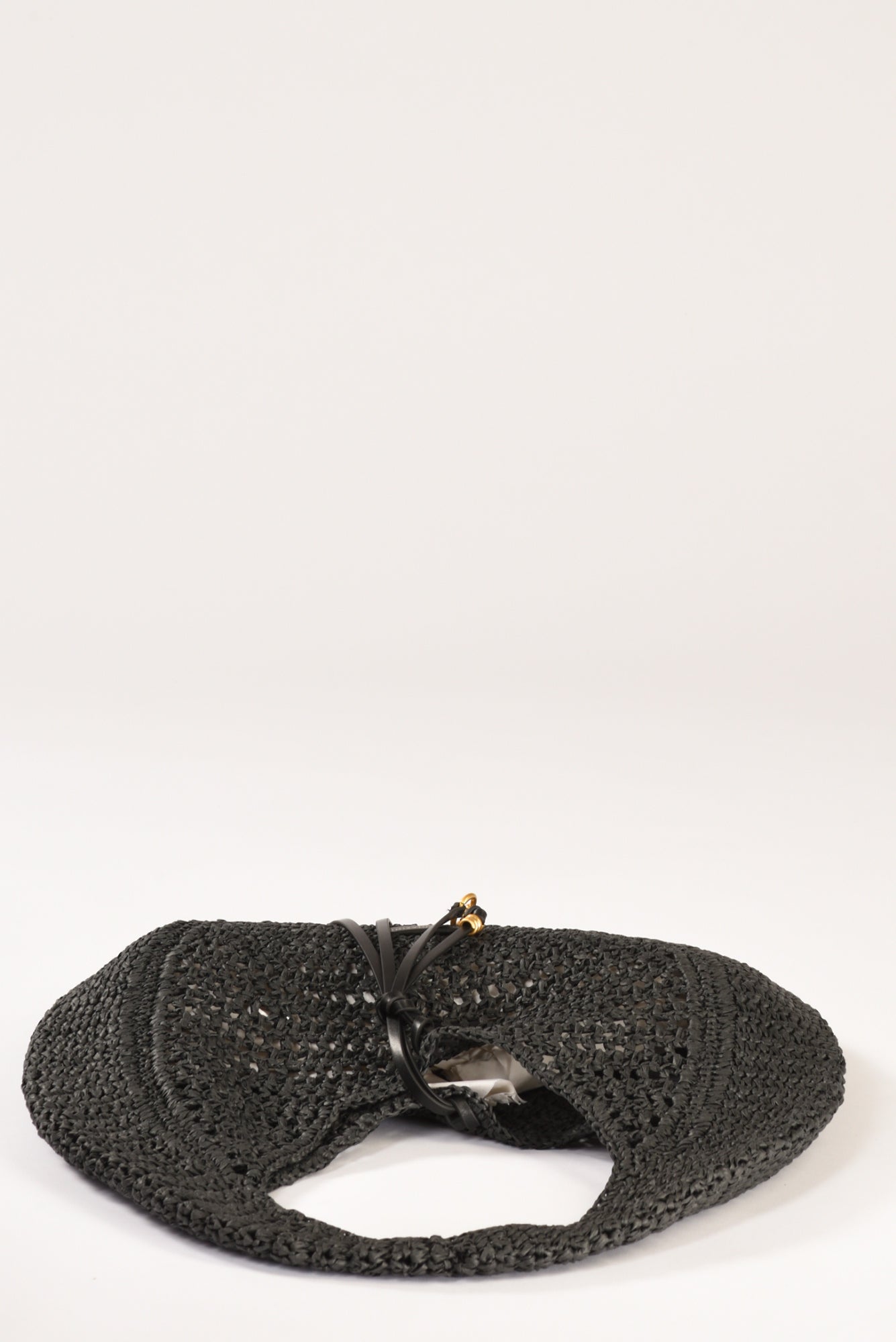 Borsa Hobo Realizzata In Paglia Crochet, Chiusa Da Cordoncino In Pelle Con Dettaglio Metallico, Dimensione Cm 43x40x12, Made In Cina, Composizione 100 Paglia