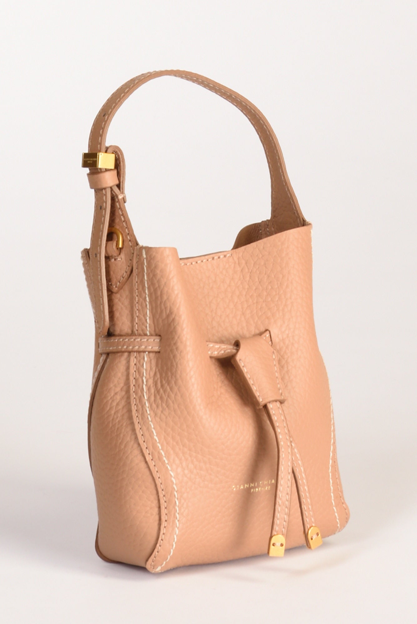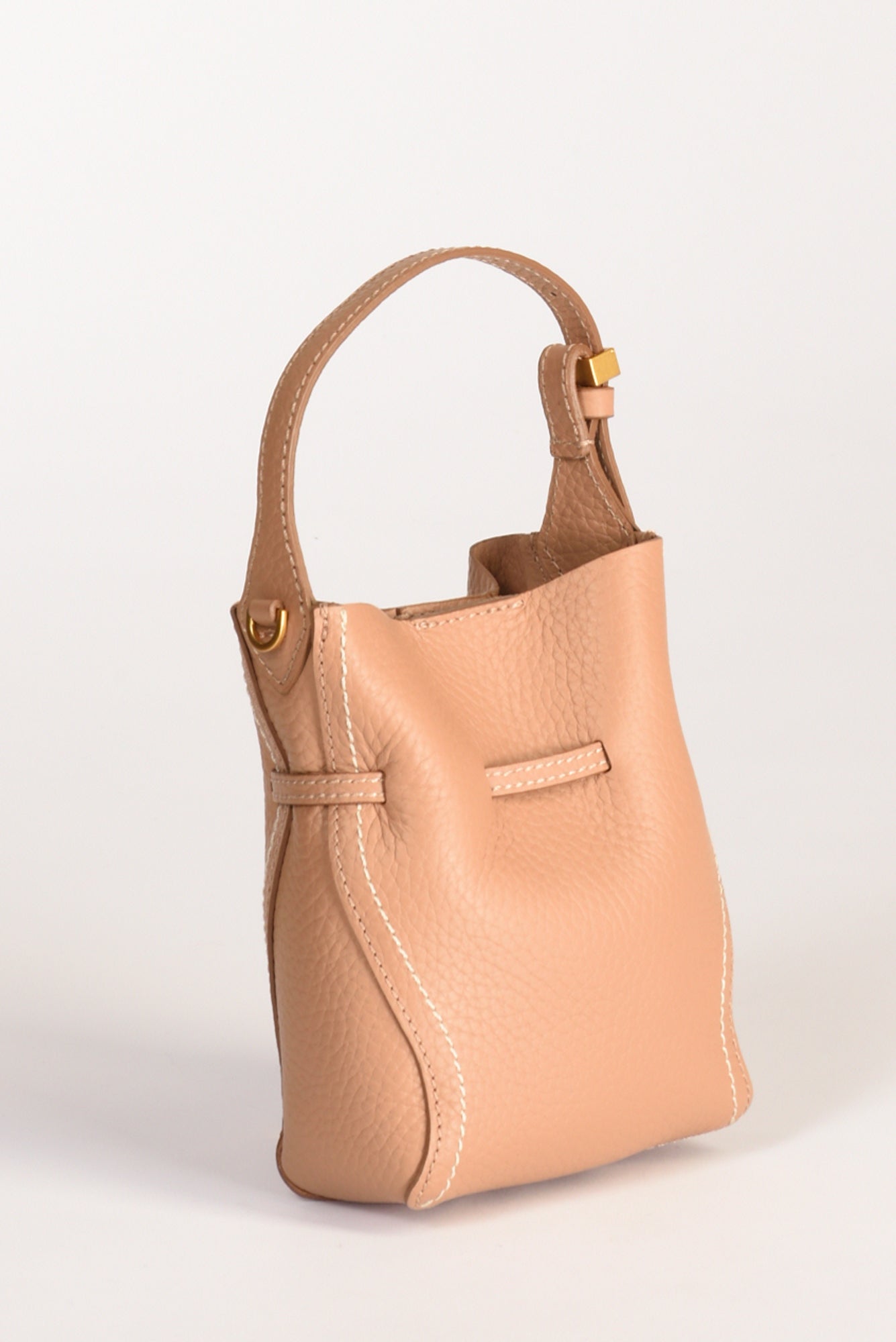 Borsa A Spalla Modello Secchiello, Realizzata In Pelle Double Grana Maxi, Rifinita Con Impunture A Contrasto, Monoscomparto, Dotata Di Tracolla Amovibile, Sfoderata, Chiusa Da Magnete, Impreziosita Da Dettagli In Metallo Passantee Gemello Logato E Finalini, Composizione Pelle, Made In Italy, Dimensioni 20x15x7