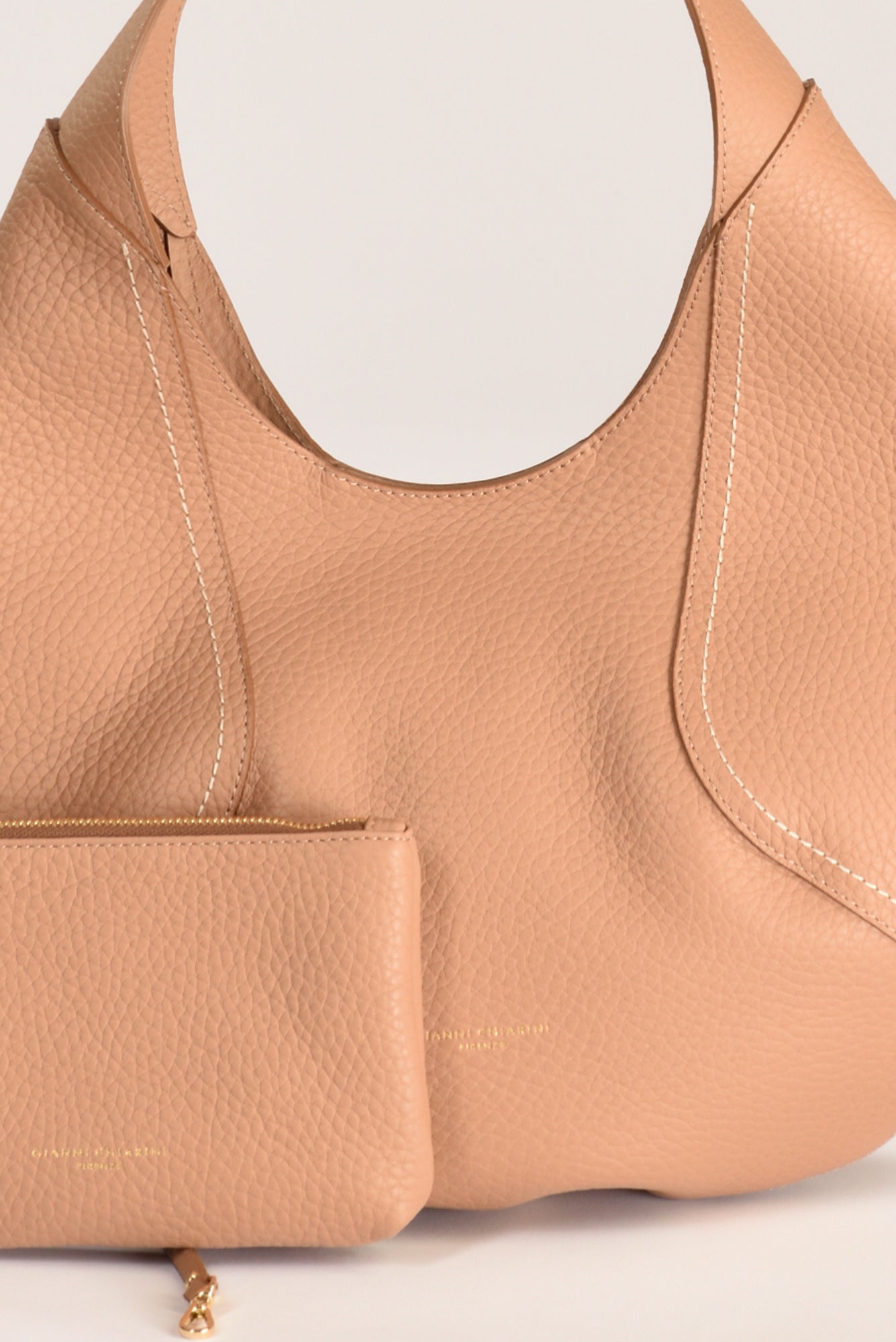 Borsa Hobo Realizzata In Pelle Martellata, Sfoderata, Chiusura Calamitata, Pochette Amovibile Abbinata, Cuciture A Rilievo E Contrasto Fronte E Retro, Dimensione Cm 50x43x12, Made In Cina, Composizione 100 Paglia