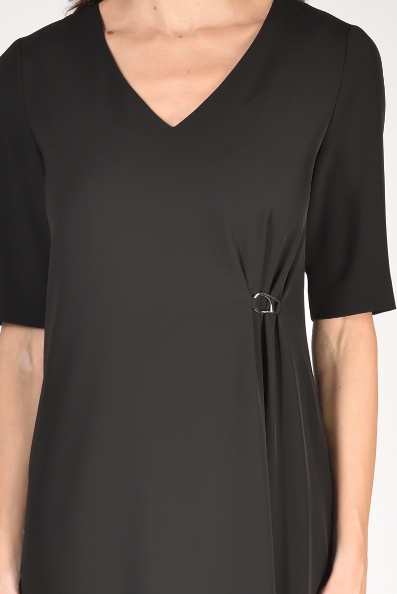 Abito Longuette, Mezza Manica, Scollo V, Profonda Apertura Posteriore Chiusa Da Bottone Con Asola Ricoperta, Spacchi Laterali, Piccolo Moschettone Decorativo In Vita Che Crea Un'arricciatura, Vestibilita' Regular, Composizione 96 Poliestere, 4 Elastan, Made In Italy