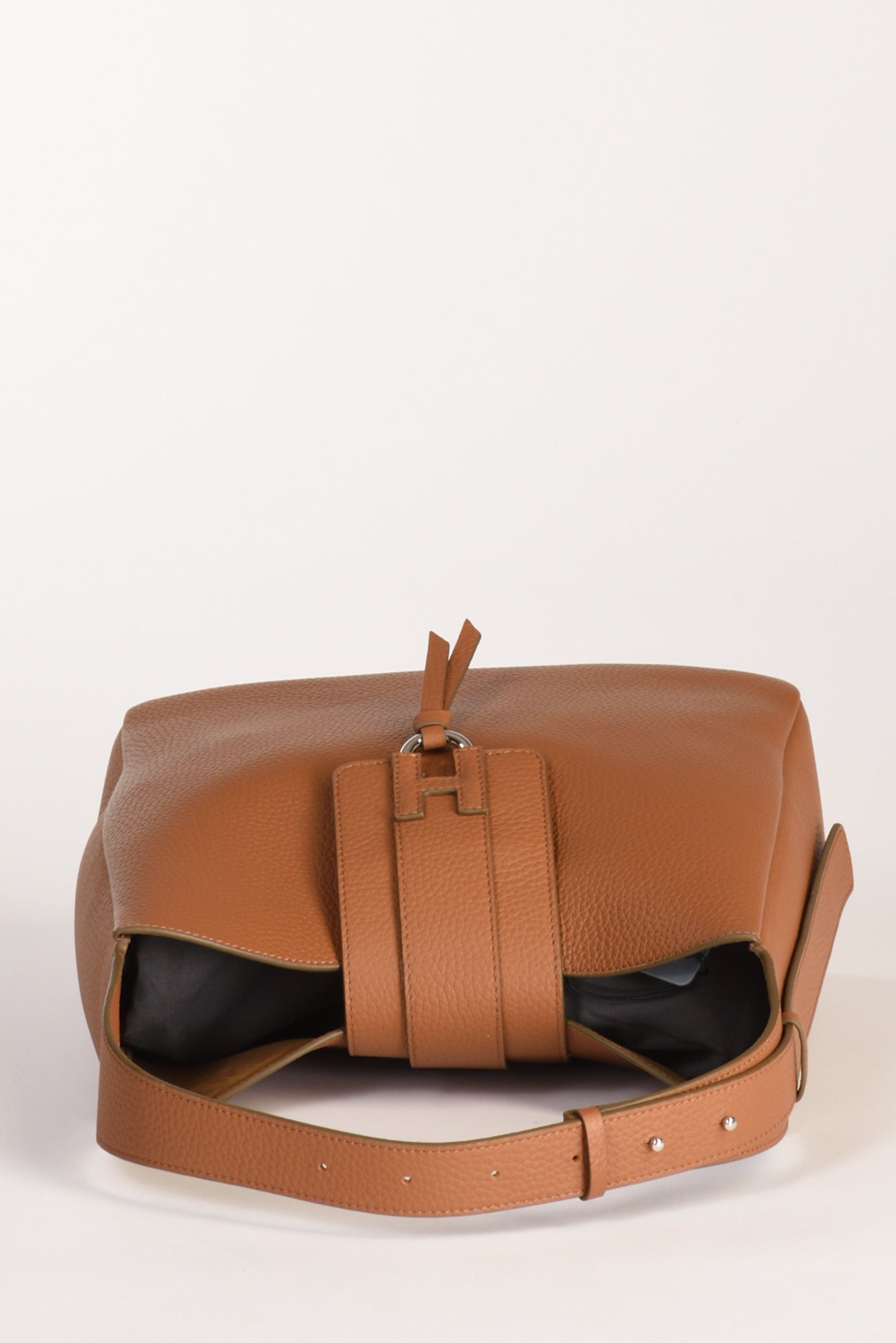 Borsa Hobo Con Manico A Spalla Regolabile, Realizzata In Pelle Martellata, Chiusa Da Pattina E Bottone Magnetico, Sulla Chiusura H In Rilievo Con Logo Impresso E Nappine, Sfoderata, Tasca Interna, Piedini In Metallo, Composizione Pelle, Made In India, Dimensioni 28x29x9