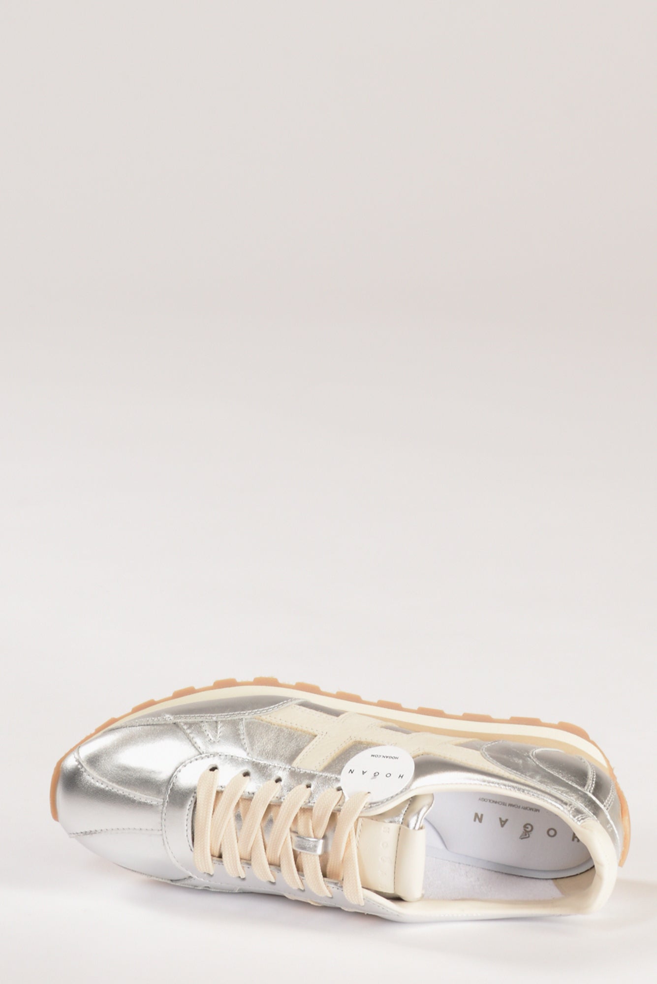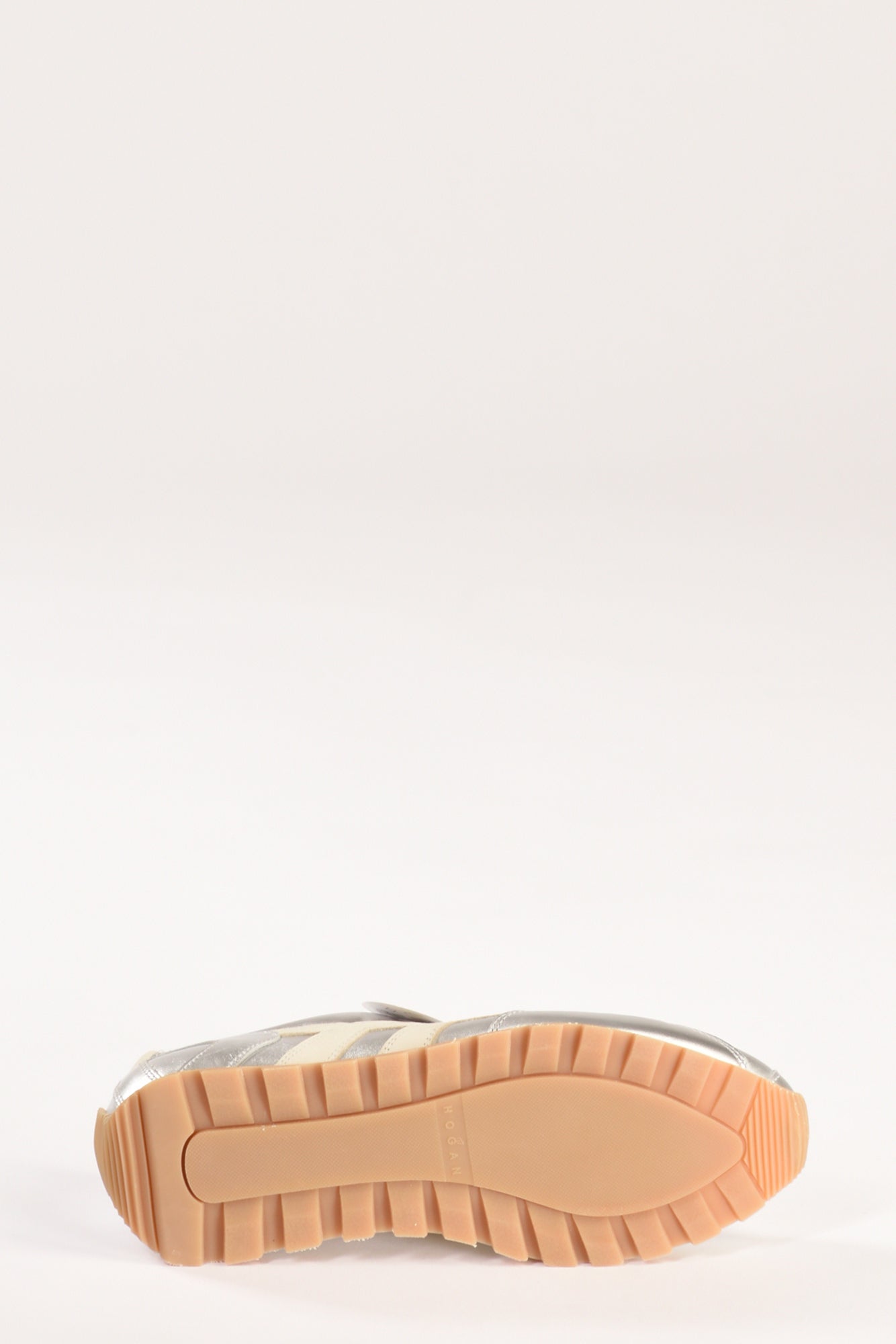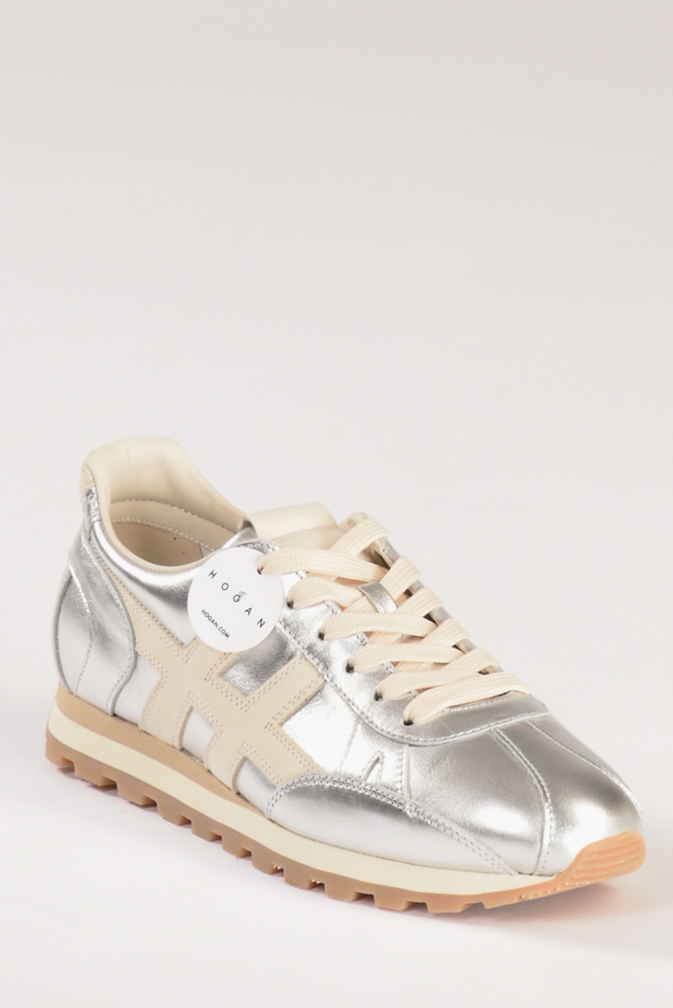 Sneakers Con Tomaia In Pelle Metallizzata, H In Nabuk Applicata Sul Lato, Dettagli In Pelle Liscia, Soletta In Memory Foam 5 Mm, Suola In Eva, Battistrada Con Tacchetti Che Disegna Anche Il Rinforzo Sul Tallone, Composizione Pelle, Gomma, Made In Italy