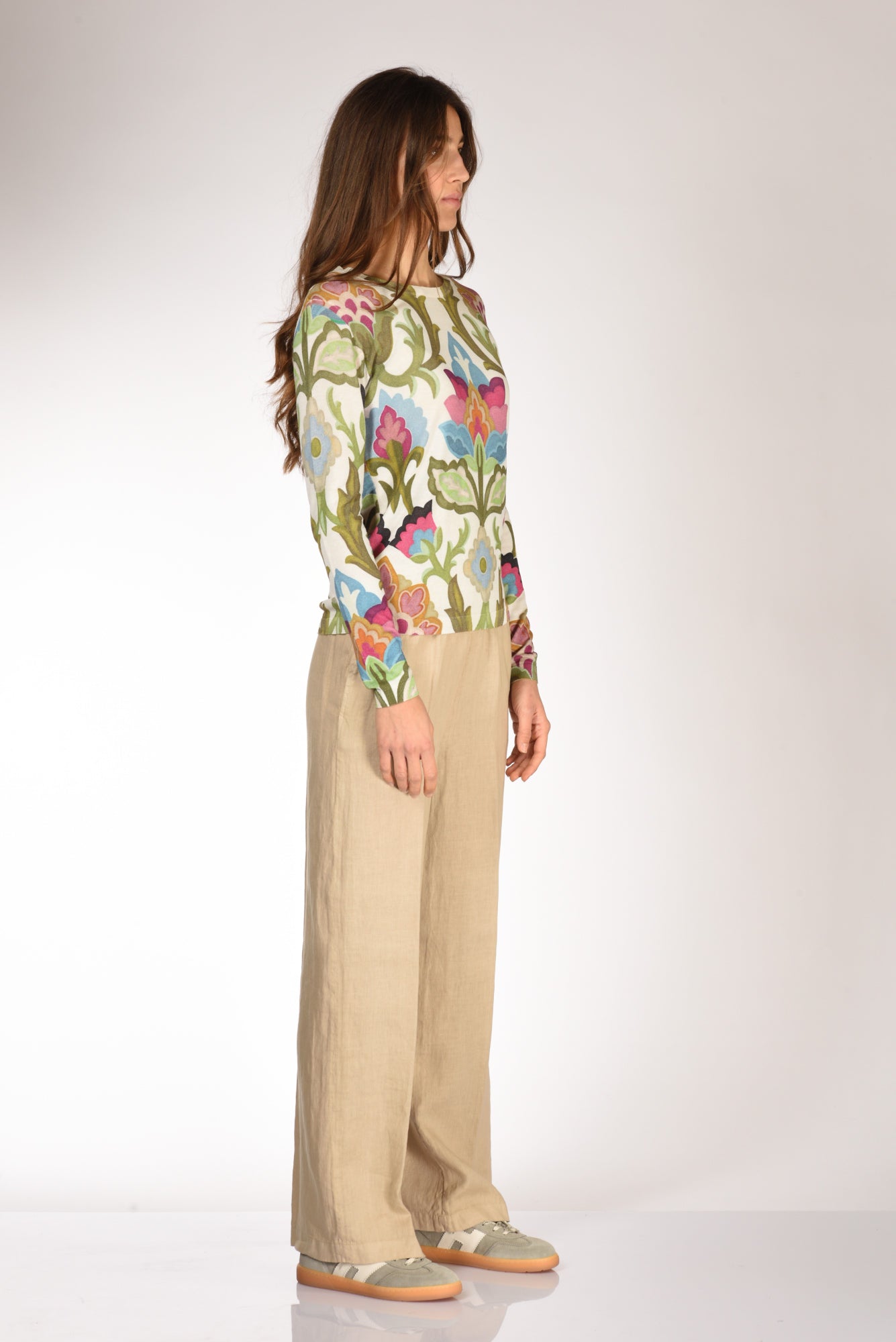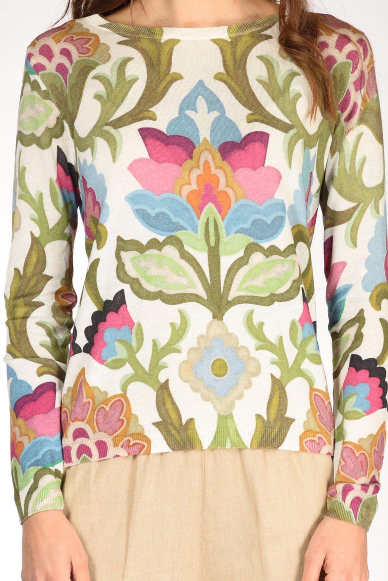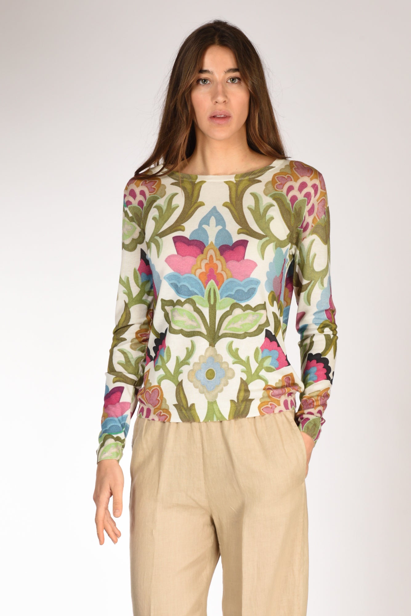 Maglia Fantasia Girocollo, Maniche Lunghe, Vestibilita' Regular, Composizione 90 Cotone, 10 Seta, Made In Italy