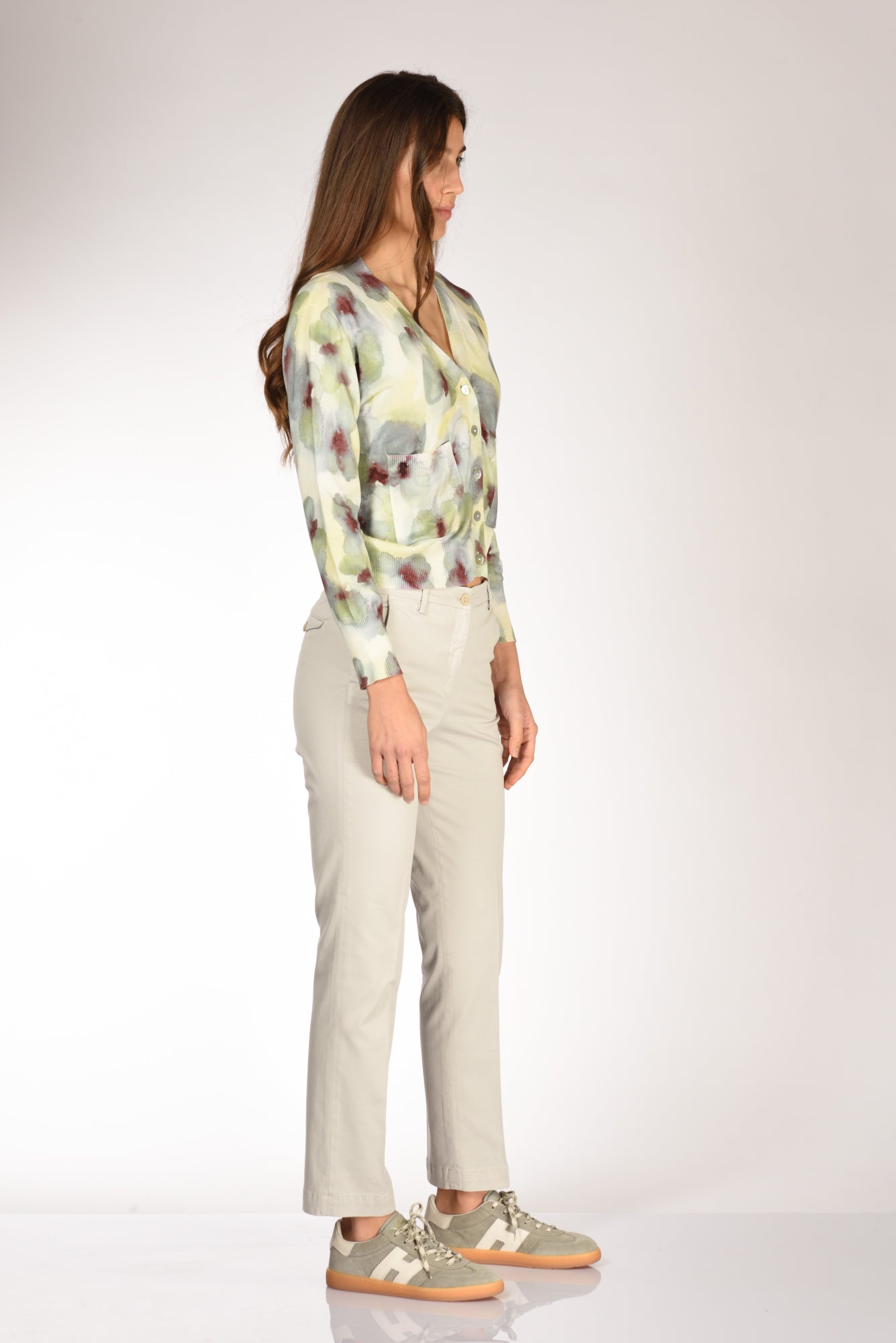 Cardigan Scollo V, Piccole Tasche Frontali Applicate, Chiuso Da Bottoni Frontali, Vestibilita' Regular, Composizione 60 Cotone, 40 Viscosa, Made In Italy