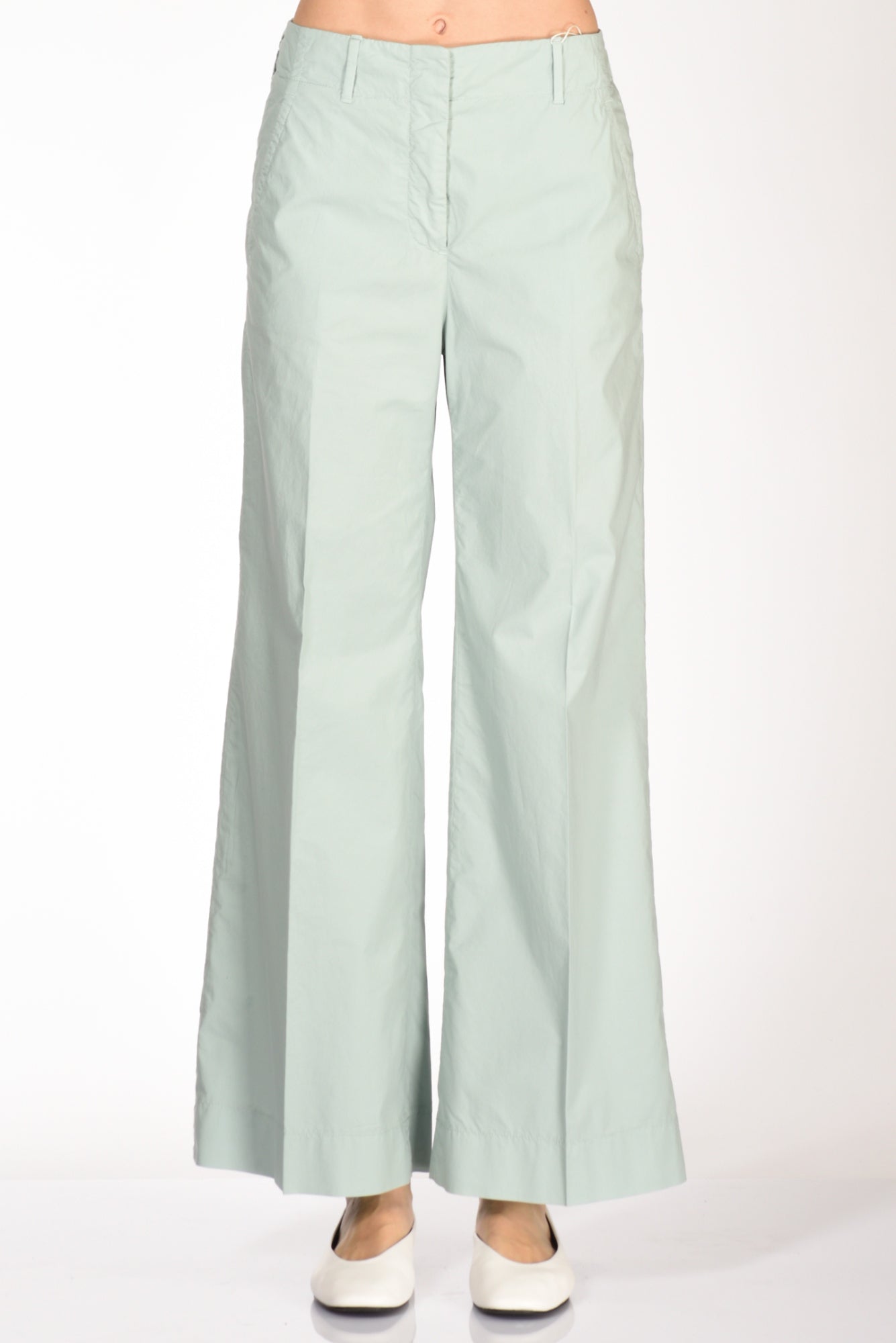 Pantaloni Vita Alta, Gamba Larga, Tasche Laterali Inserite, Posteriori A Filetto, Passanti In Vita, Chiusi Da Zip Nascosta, Gancio Metallico E Bottone, Vestibilita' Regular, Composizione 94 Cotone, 6 Elastan, Mase In Romania