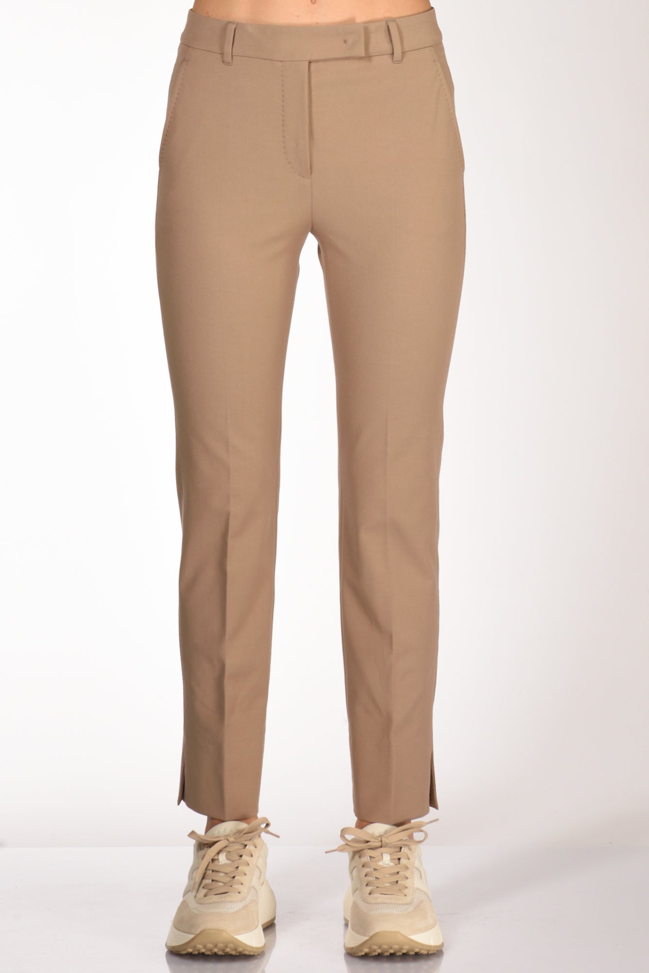 Pantaloni Gamba Sigaretta, Spacco Lato Interno Al Fondo, Tasche Anteriori Inserite E Posteriori A Filetto, Passanti In Vita, Vestibilita' Regular, Chiusura Zip E Gancio Metallico Nacosti, Composizione 95 Cotone, 5 Elastan, Made In Italy