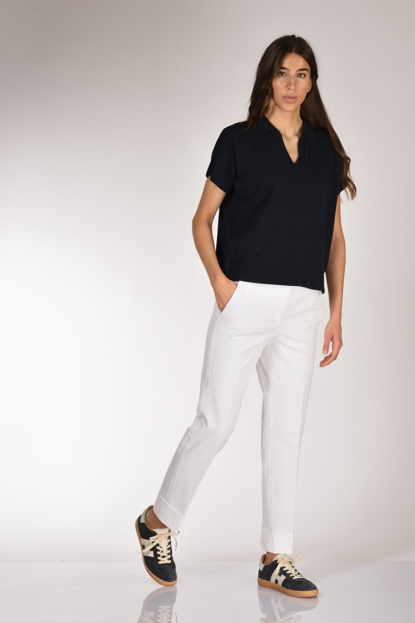 Pantaloni Sigaretta Con Risvolto Al Fondo,tasche Laterali Inserite E Posteriori A Filetto Con Bottone, Passanti In Vita, Chiusi Da Zip Nascosta, Gancio Metallico E Bottone, Vestibilita' Regular, Composizione 95 Cotone, 5 Elastan, Made In Portogallo