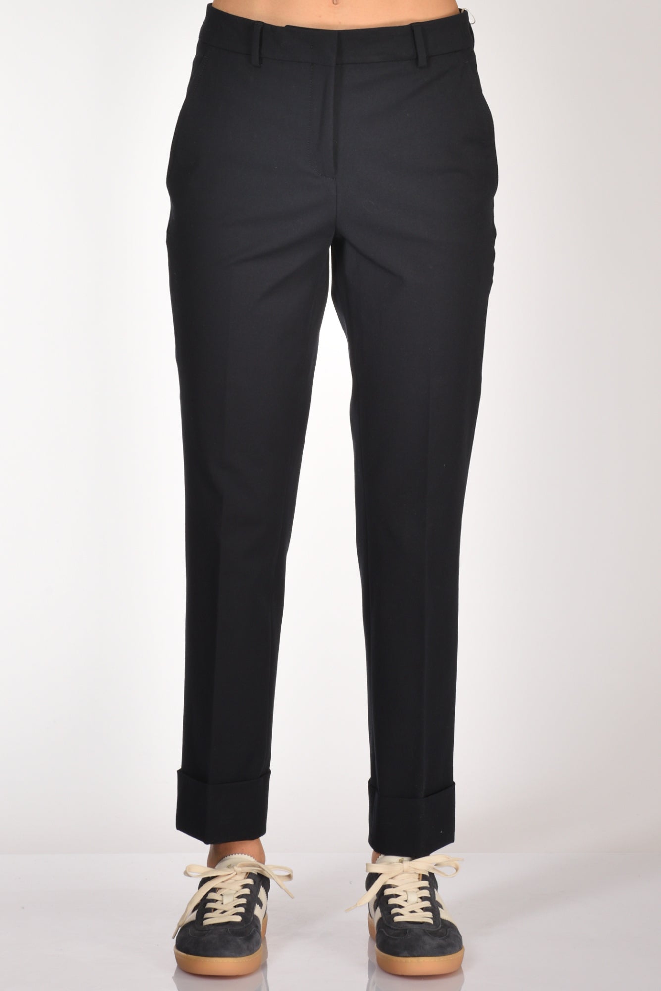 Pantaloni Sigaretta Con Risvolto Al Fondo,tasche Laterali Inserite E Posteriori A Filetto Con Bottone, Passanti In Vita, Chiusi Da Zip Nascosta, Gancio Metallico E Bottone, Vestibilita' Regular, Composizione 95 Cotone, 5 Elastan, Made In Portogallo