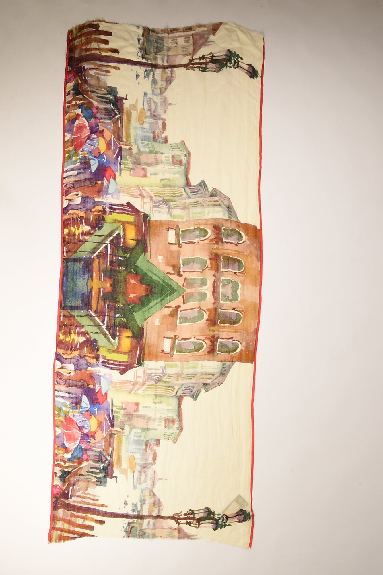 Sciarpa Stampata, Profilo Con Passamaneria, Fondo Piccola Frangetta, Made In India, Composizione 50 Lino, 50 Modal,