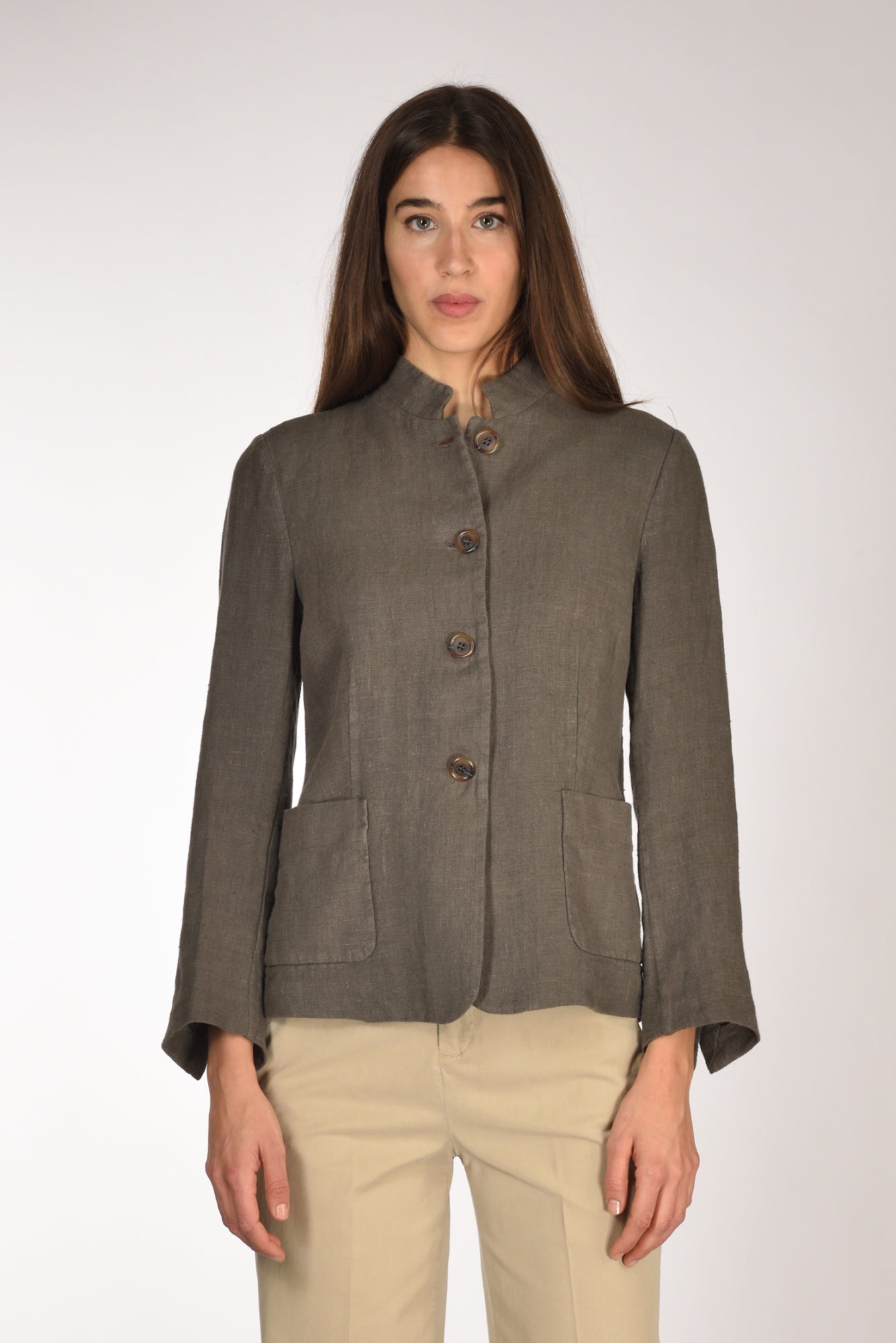Giacca Mono Petto, Collo Alla Coreana, Chiusura Bottoni A Vista, Tasche Frontali Applicate, Vestibilita' Slim, Made In Italy, Composizione 100 Lino