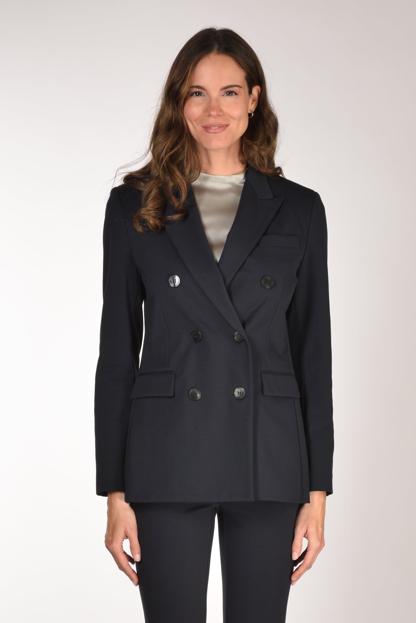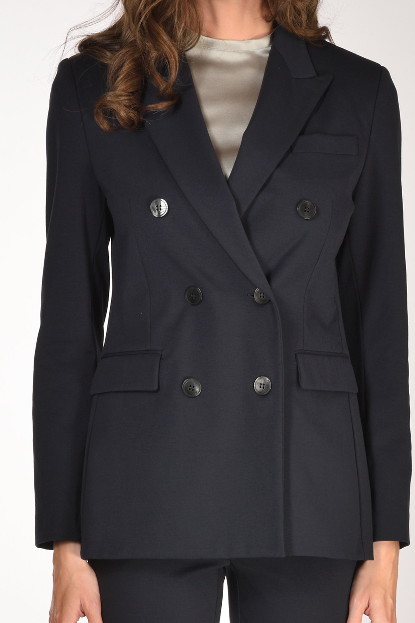 Giacca Doppio Petto, Revers A Lancia, Spacco Posteriore Centrale, Tasche Frontali Con Patta Battente, Sfoderata, Vestibilita' Regular, Composizione 53 Cotone, 38 Poliammide, 9 Elastan, Made In Italy