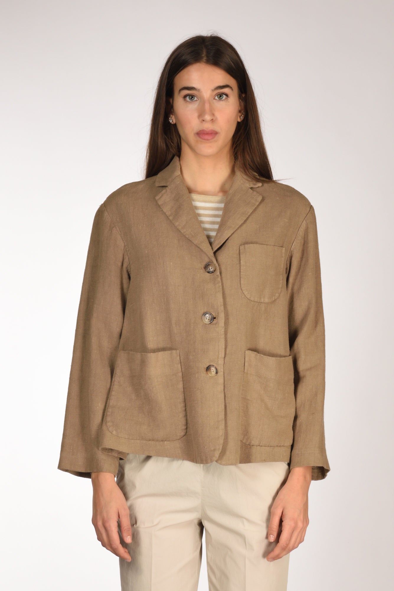 Giacca Mono Petto Con Bottoni A Vista, Orlo Stondato, Scollo Rever, Tre Tasche Applicate Frontalmente, Doppio Spacco Posteriore, Sfoderata, Linea Leggermente A Trapezio, Vestibilita' Morbida, Made In Italy, Composizione 100 Lino
