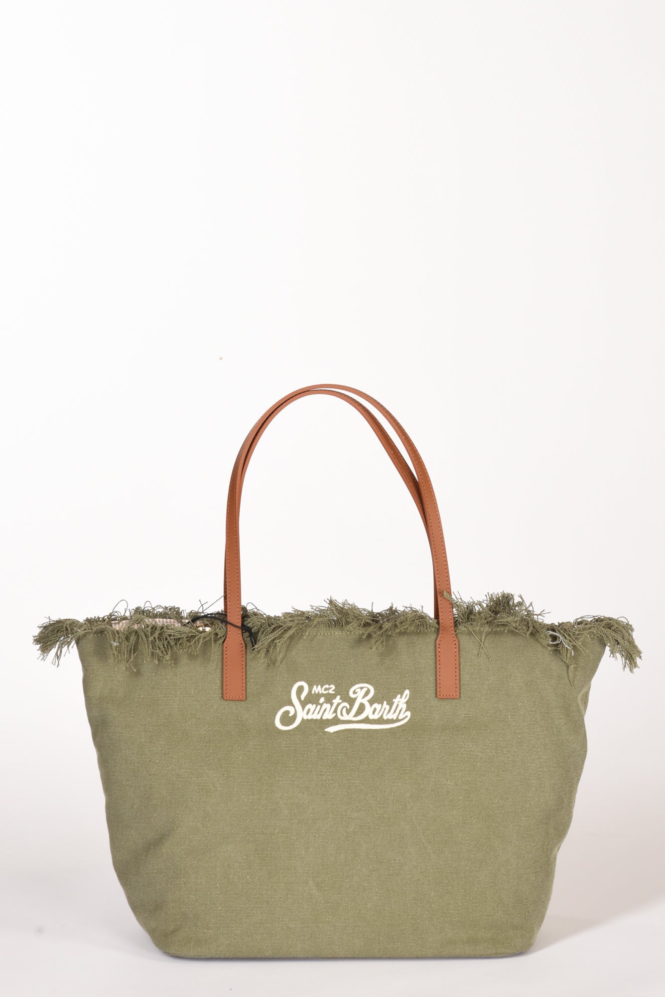 Shopper Realizzata In Canvas, Manici In Pelle, Foderata, Fondo Morbido, Frange, Logo Frontale Ricamato, Chiusura Zip Centrale, Tasca Interne Multiuso Zippata, Dimensioni 35x30x17, Luce Manico 23 Cm, Made In Cina, Composizione 95 Cotone, 5 Pelle Bovina, Fodera 100 Cotone