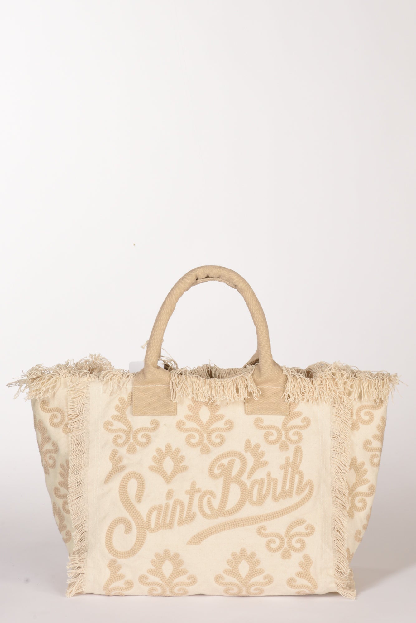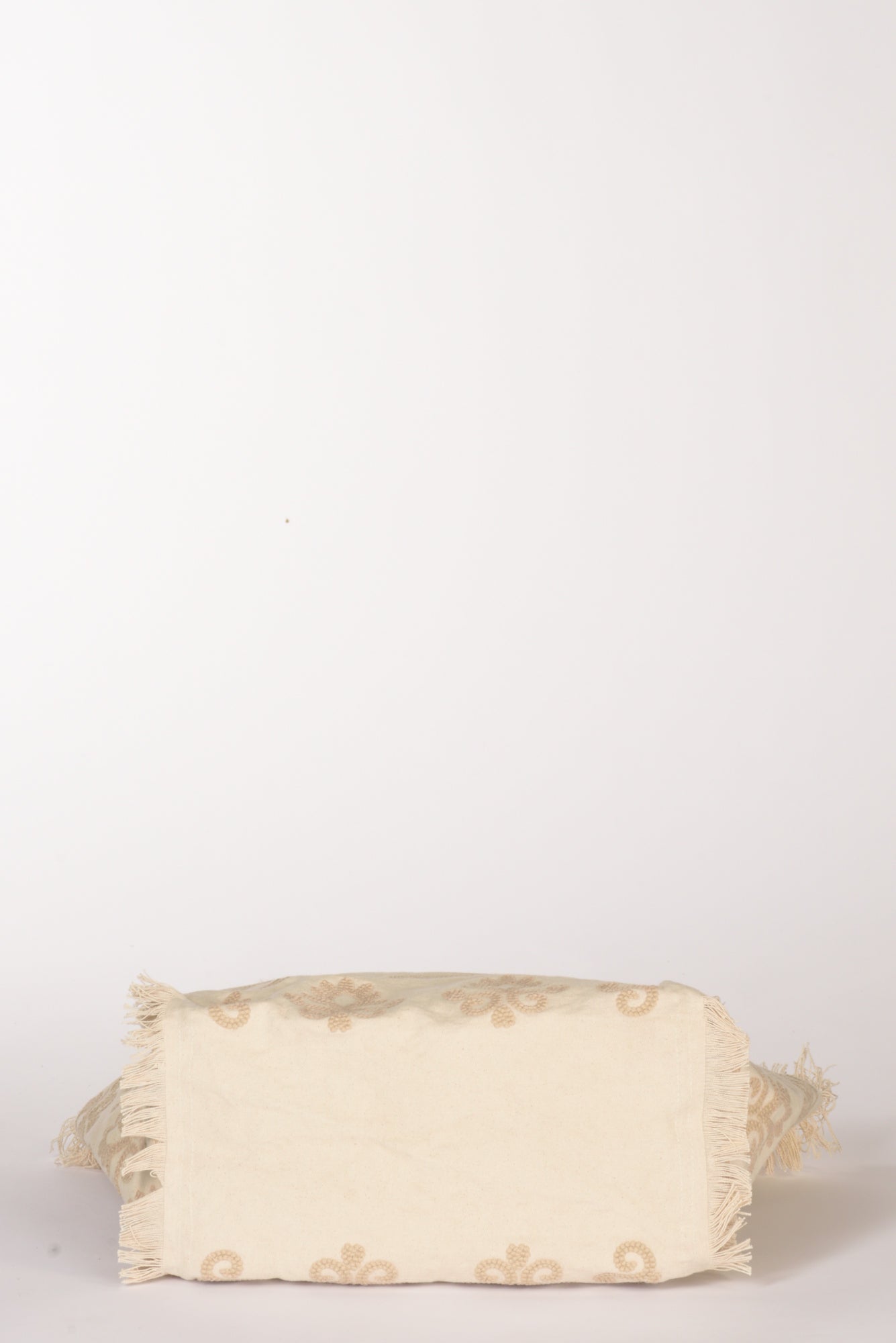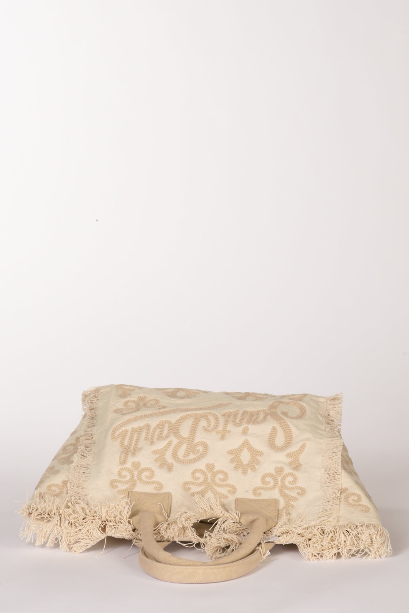Shopper Foderata Con Fondo Morbido, Frange Laterali, Logo E Ricami In Rilievo Ambo I Lati, Chiusura Zip Centrale, Due Tasche Interne Multiuso Di Cui Una Zippata, Dimensioni 40x32x18, Luce Manico 15 Cm, Made In Inda, Composizione 100 Cotone, Fodera 100 Cotone
