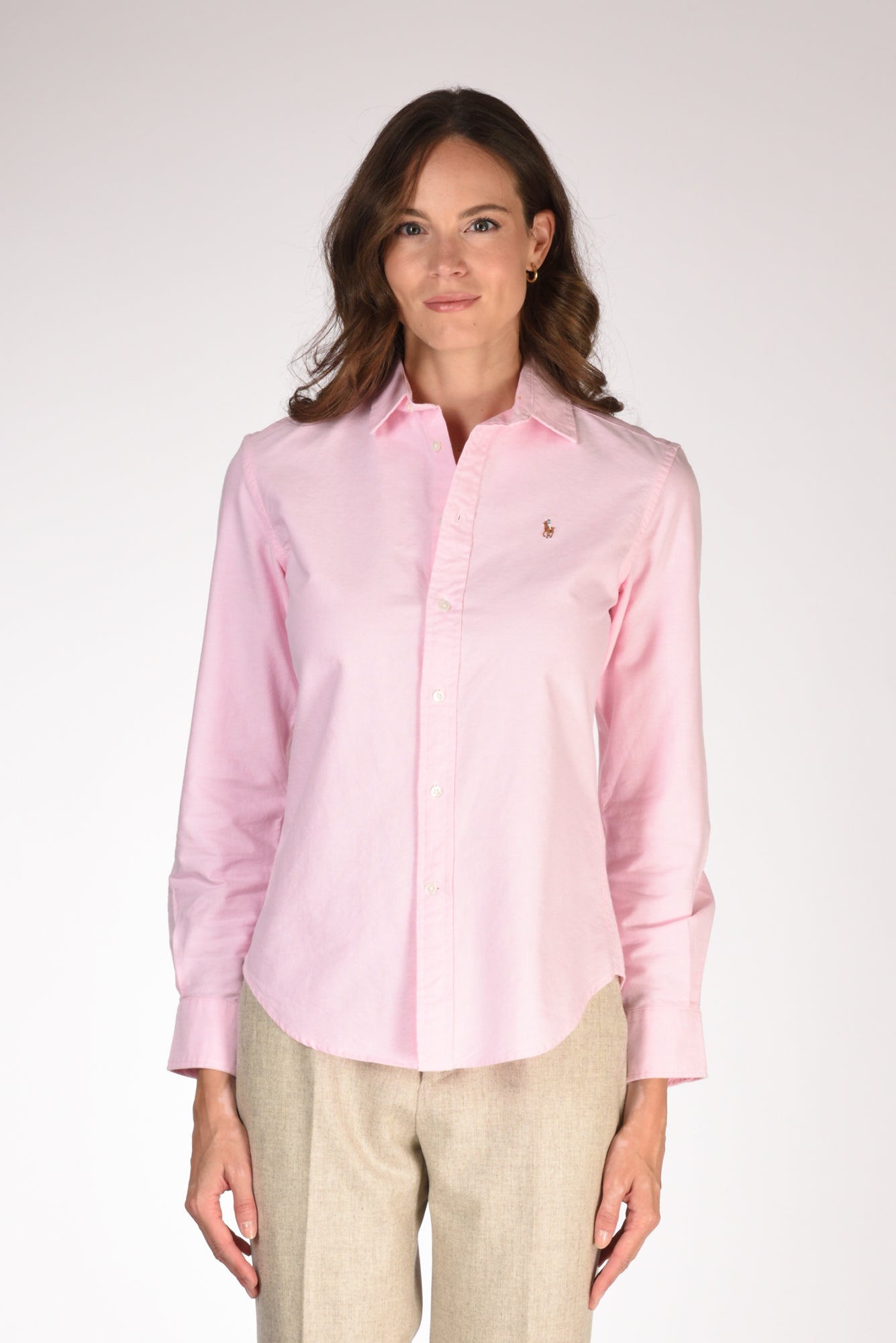 Camicia Manica Lunga, Leggermente Sfiancata, Orlo Stondato, Logo Frontale Ricamato, Chiusa Da Bottoni Vista, Vestibilita' Regular, Composizione 100 Cotone, Made In Sri Lanka O Indonesia.