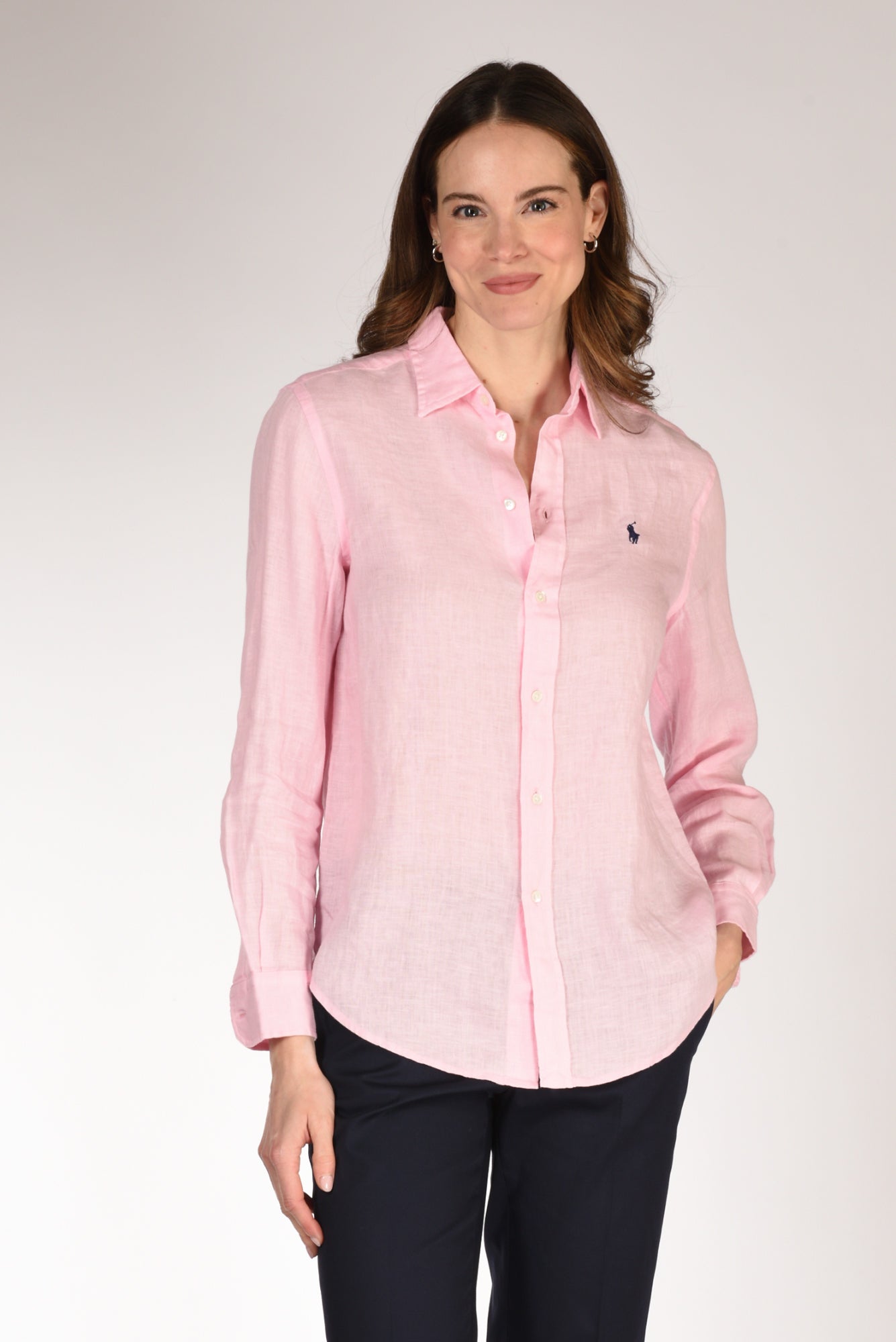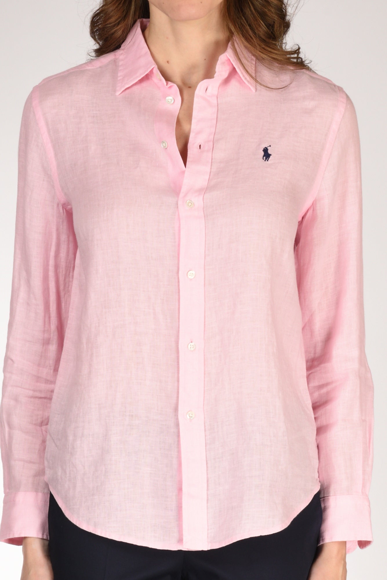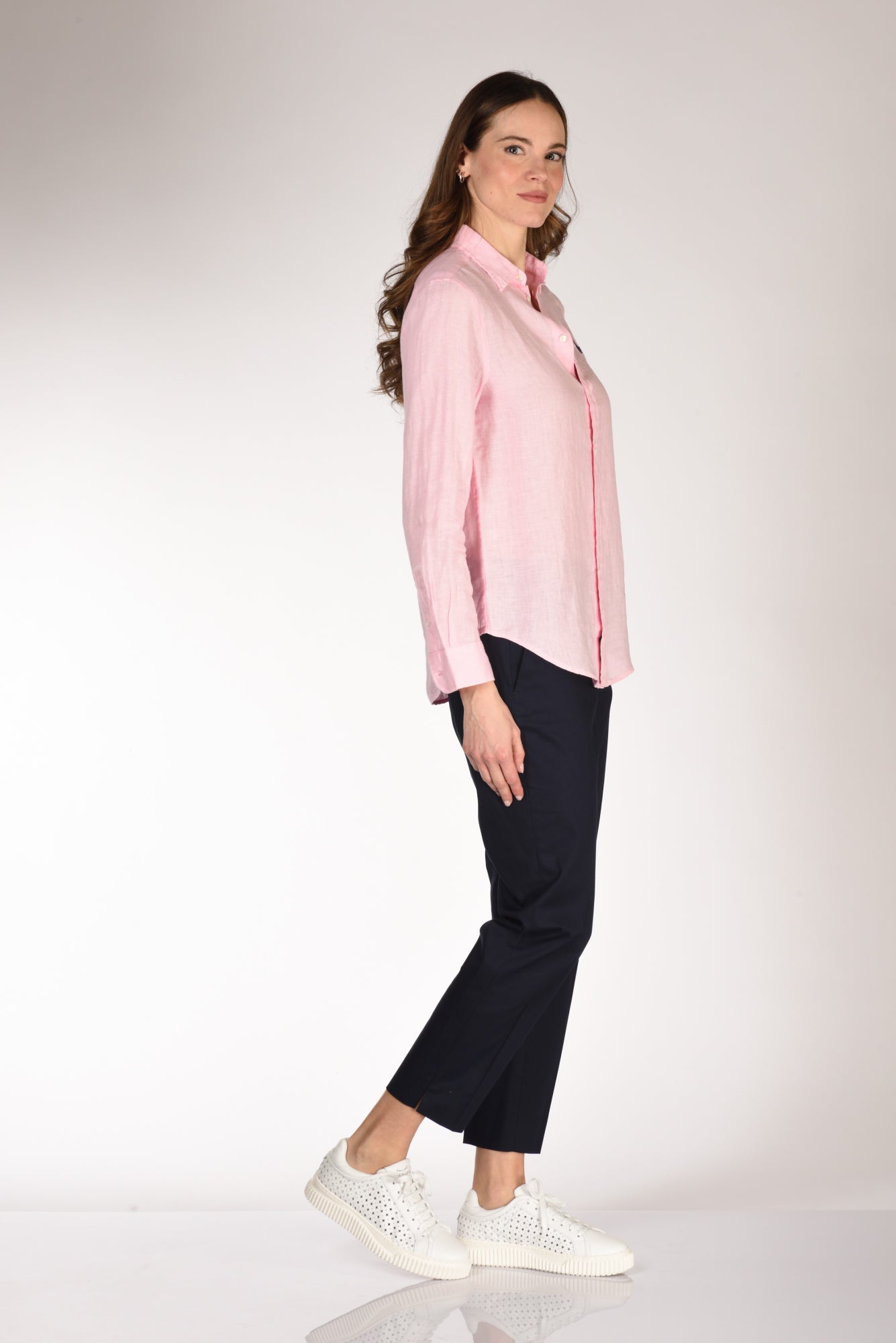 Camicia A Manica Lunga, Orlo Stondato, Logo Frontale Ricamato, Chiusa Da Bottoni Vista, Vestibilita' Regular, Made In India, Composizione 100 Lino