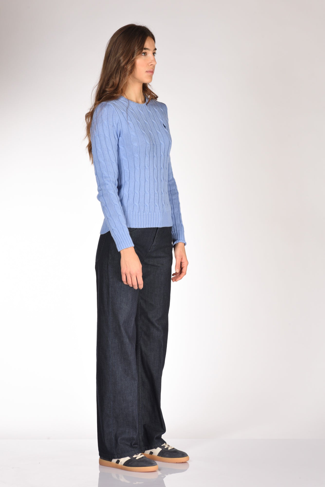 Maglia Girocollo, Manica Lunga, Lavorazione Trecce, Bordi A Coste, Logo Frontale Ricamato, Vestibilita' Slim, Made In Cina, Composizione100 Cotone