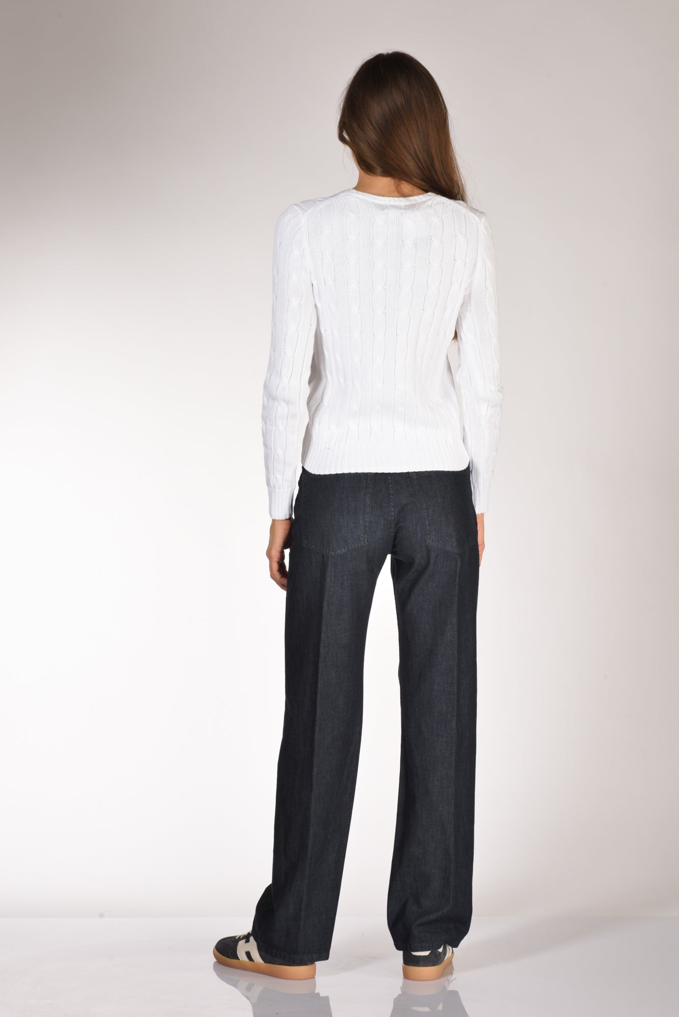 Maglia Girocollo, Manica Lunga, Lavorazione Trecce, Bordi A Coste, Logo Frontale Ricamato, Vestibilita' Slim, Made In Cina, Composizione100 Cotone