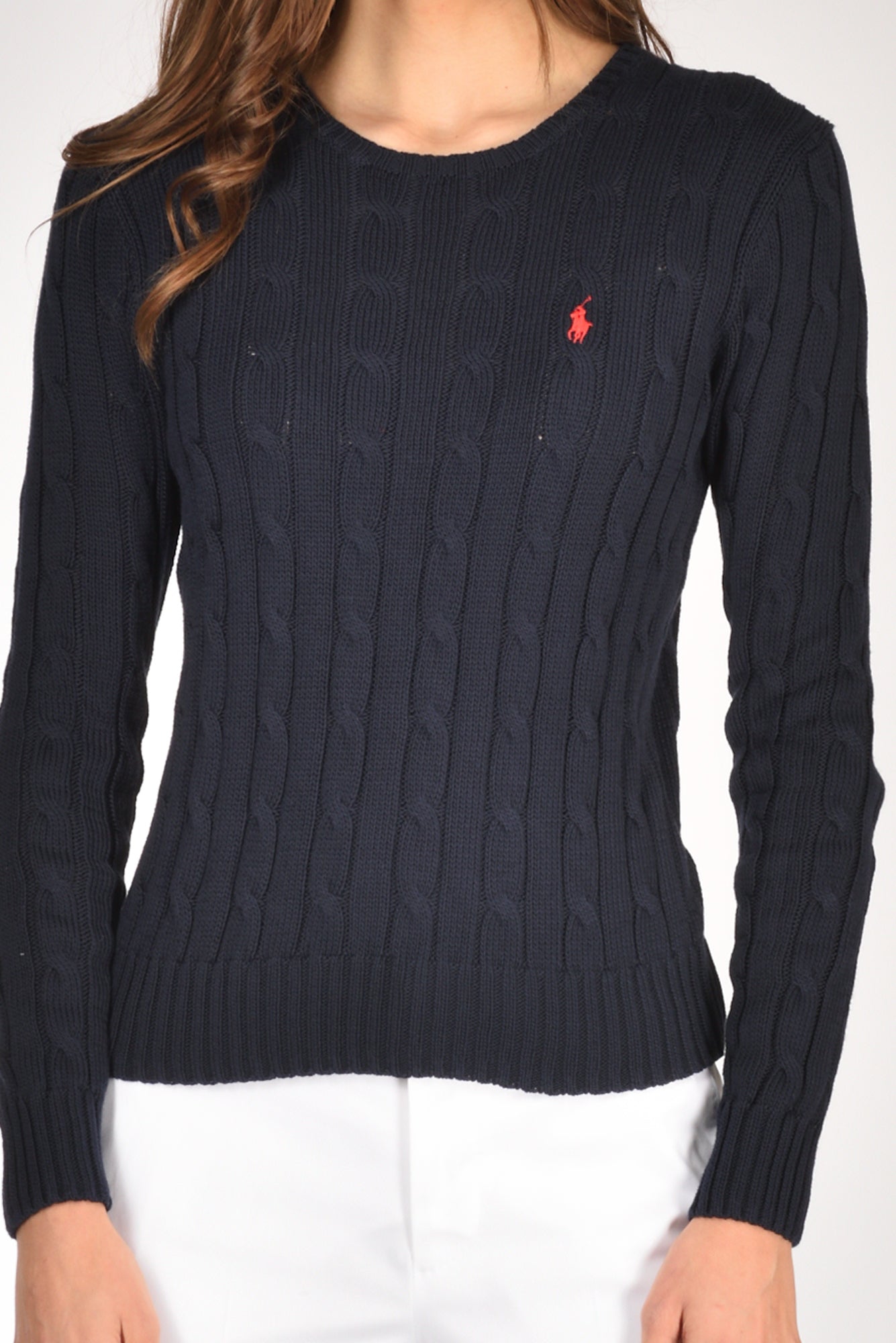 Maglia Girocollo, Manica Lunga, Lavorazione Trecce, Bordi A Coste, Logo Frontale Ricamato, Vestibilita' Slim, Made In Cina, Composizione100 Cotone