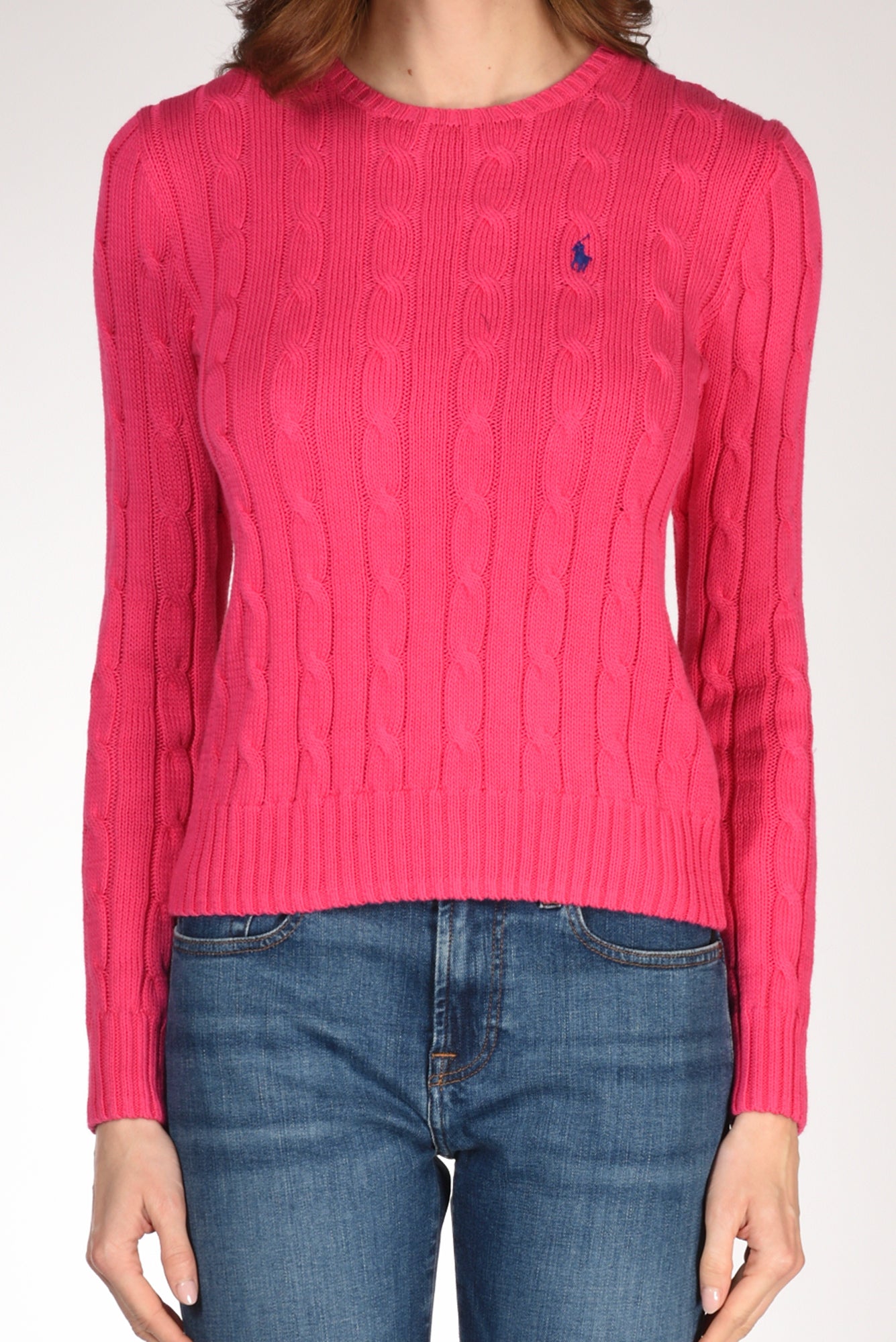Maglia Girocollo, Manica Lunga, Lavorazione Trecce, Bordi A Coste, Logo Frontale Ricamato, Vestibilita' Slim, Made In Cina, Composizione100 Cotone