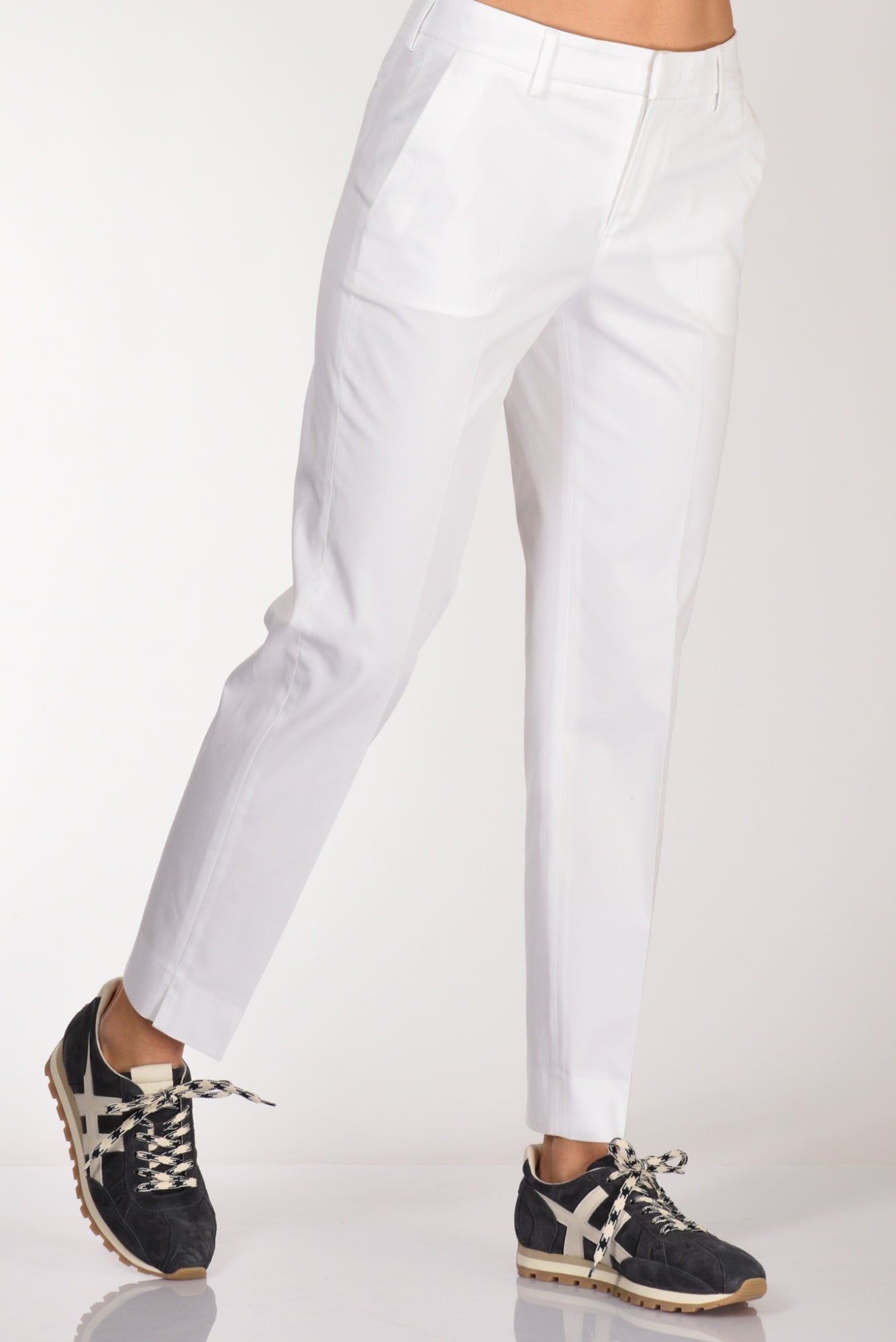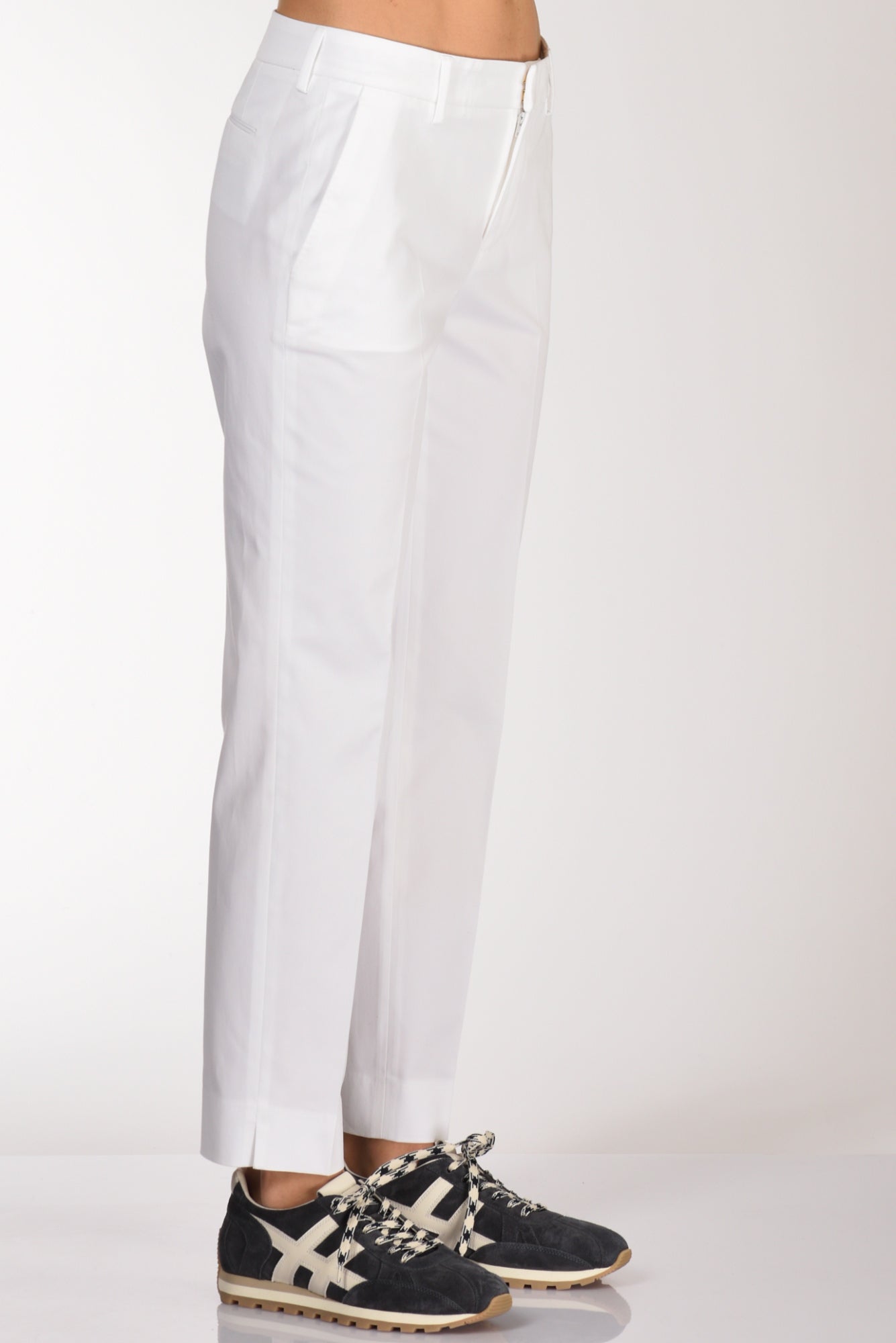 Pantalone Taglio Sigaretta Con Spacchetto Finale Lato Esterno, Tasche Laterali Inserite E Posteriori A Filetto, Passanti In Vita, Chiusura Zip, Bottone E Gancio Metallico Nascosti, Vestibilita' Regular, Made In Romania, Composizione 97 Cotone, 3 Elastan