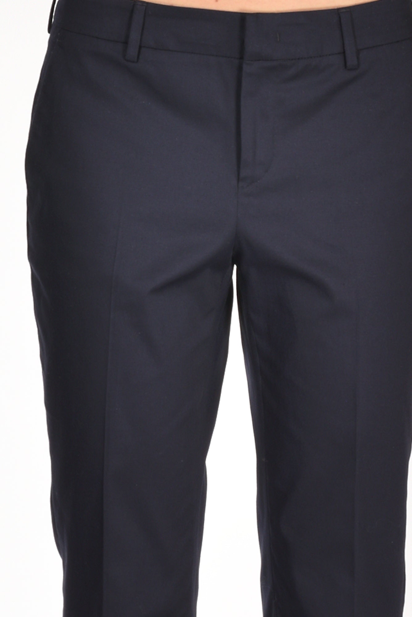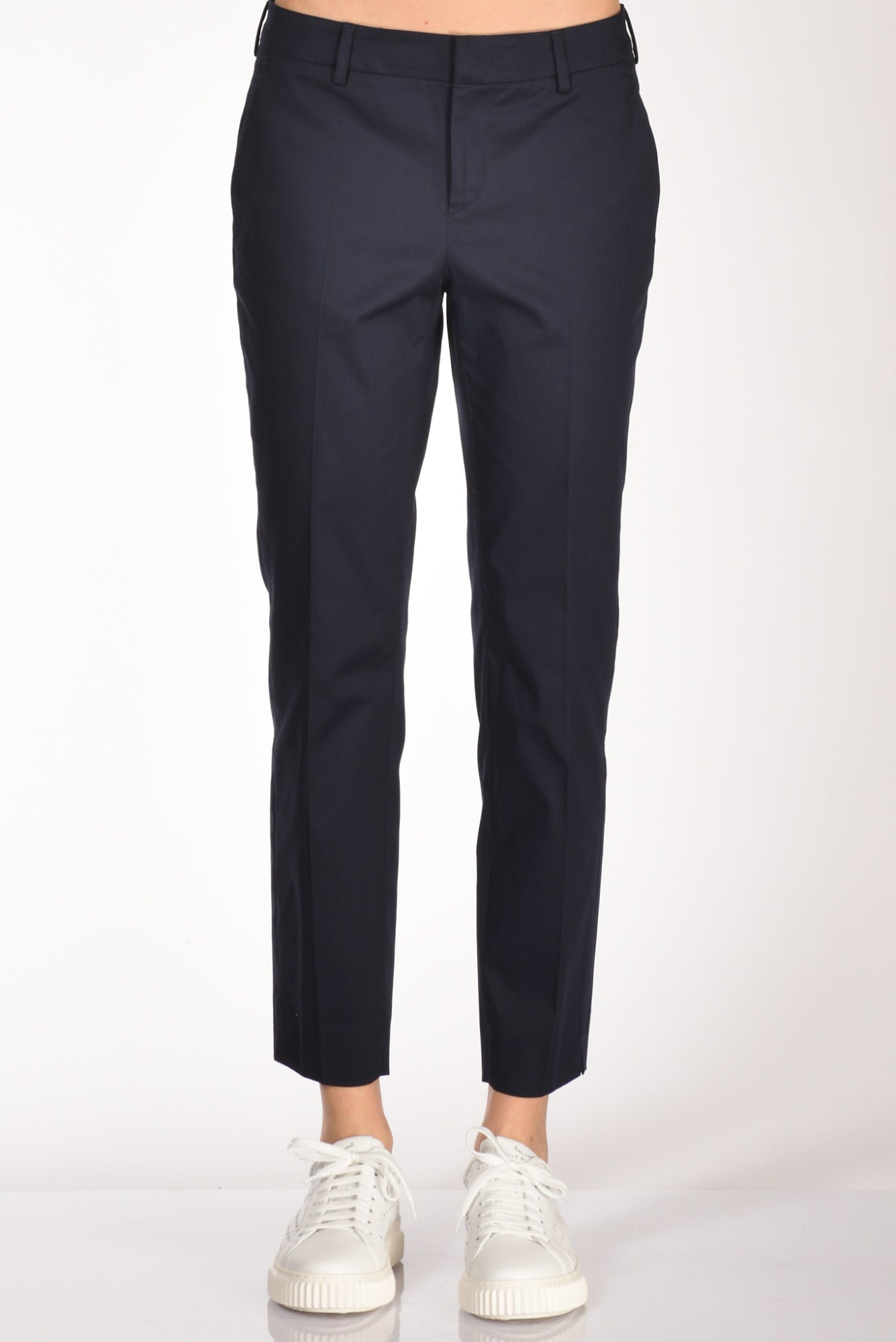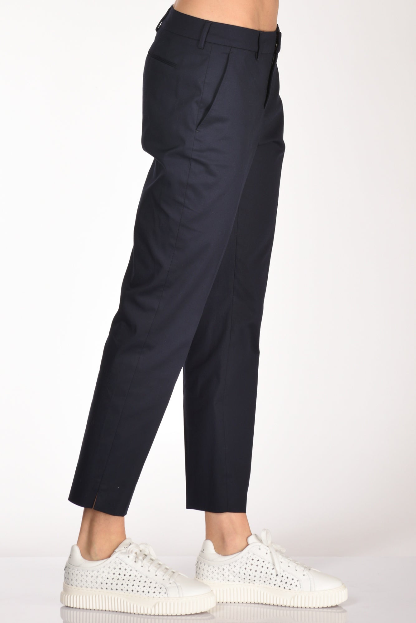 Pantalone Taglio Sigaretta Con Spacchetto Finale Lato Esterno, Tasche Laterali Inserite E Posteriori A Filetto, Passanti In Vita, Chiusura Zip, Bottone E Gancio Metallico Nascosti, Vestibilita' Regular, Made In Romania, Composizione 97 Cotone, 3 Elastan
