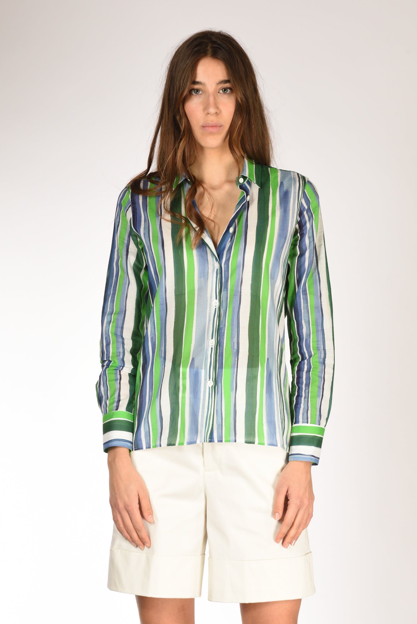 Camicia Stampata, Colletto All'italiana, Manica Lunga Con Polso Diritto Ad Un Bottone, Chiusura Bottoni A Vista, Sfondo Piega Posteriore, Linea Morbida, Fondo Stondato Ed Asimmetrico, Made In Tunisia, Composizione 100 Cotone