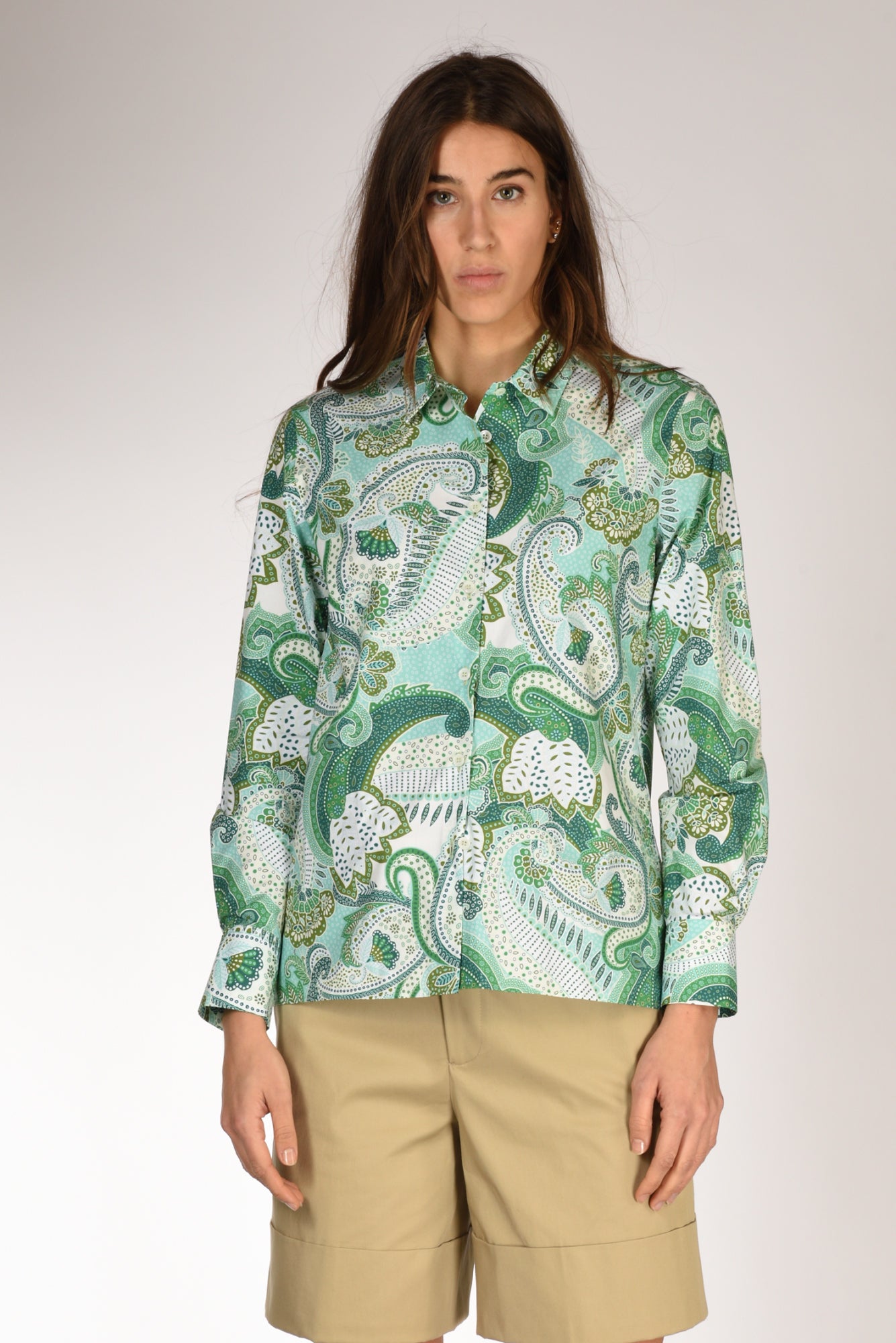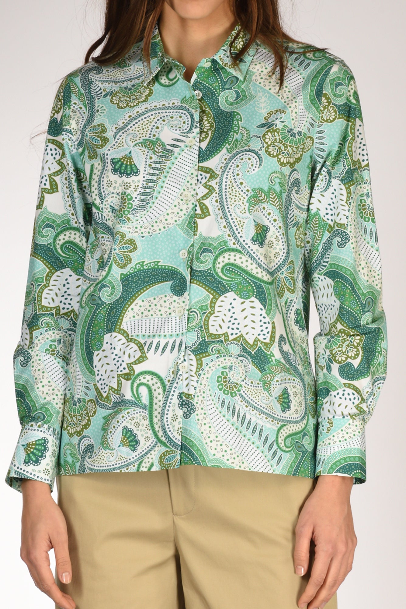 Camicia Stampata, Colletto All'italiana, Manica Lunga Con Polso Diritto Ad Un Bottone, Chiusura Bottoni A Vista, Sfondo Piega Posteriore, Linea Morbida, Fondo Stondato Ed Asimmetrico, Made In Tunisia, Composizione 100 Cotone