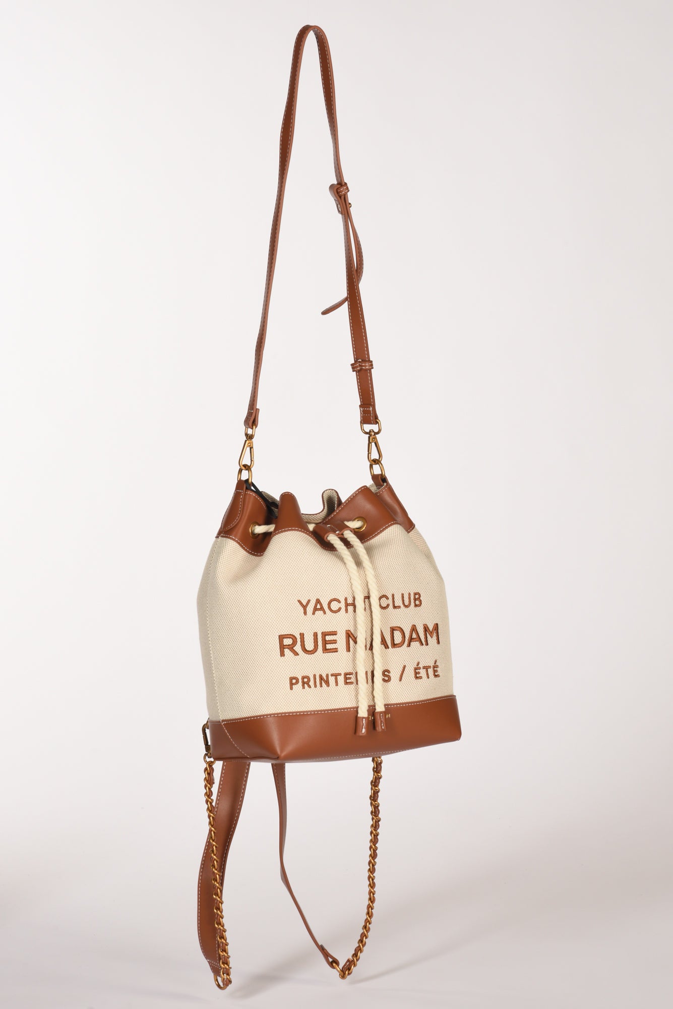 Borsa Realizzata In Tessuto Ed Ecopelle Dalla Doppia Portata Tracolla E Zaino, Modello Secchiello, Tracolla In Ecopelle, Spallacci In Ecopelle E Catena Metallica Entrambe Amovibili, Fondo Semi Rigido, Logo Ricamato Frontalmente, Foderata, Chiusura A Coulisse Con Corda, Made In Italy, Composizione 80 Cotone, 20 Poliuretano, Fodera 100 Cotone, Dimensioni 21x15x31 Cm