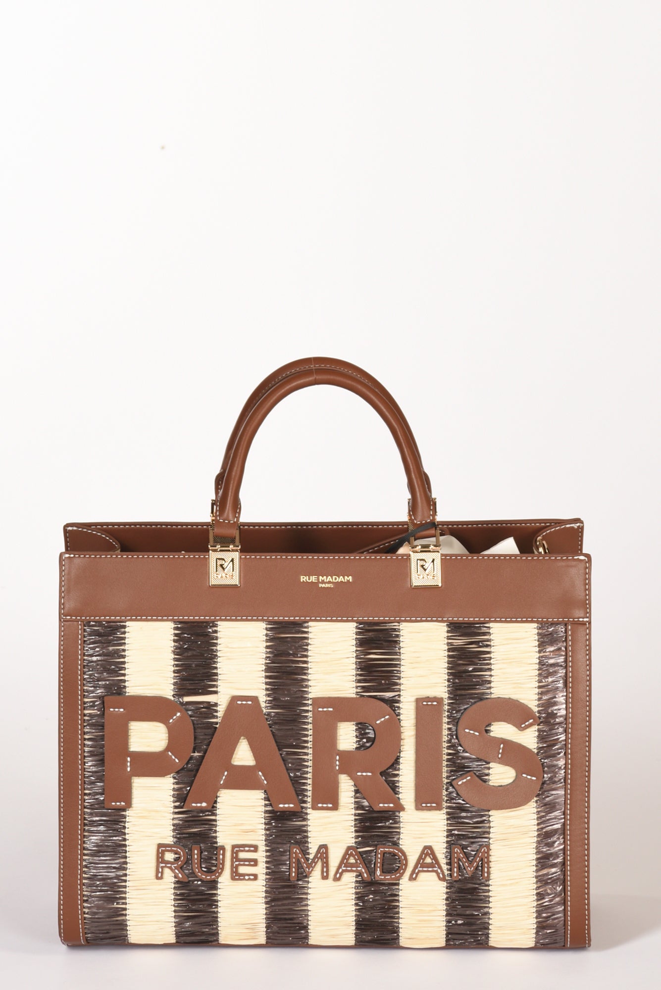 Tote Bag In Ecopelle Con Logo A Rilievo Parte Frontale, Manici In Ecopelle Con Dettagli Metallici Logati, Tasca Centrale Chiusa Da Zip, Dotata Di Tracolla Di Servizio, Tasche Interne Multiuso Di Cui Una Zippata, Applicazioni In Rafia Tono Su Tono Parte Frontale, Piedini Al Fondo, Composizione 80 Cotone, 20 Poliuretano, Fodera 100 Cotone, Made In Italy