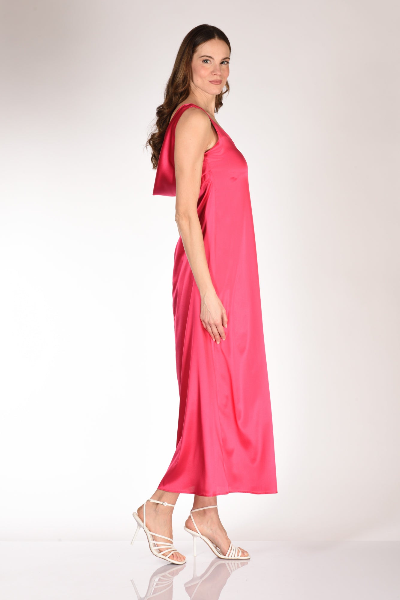 Abito Lungo Sottoveste, Spalla A Canotta, Scollo A Drappeggio Parte Alta Schiena E A V Frontale, Vestibilita' Regualr, Composizione 93 Seta, 3 Elastan, Made In Italy