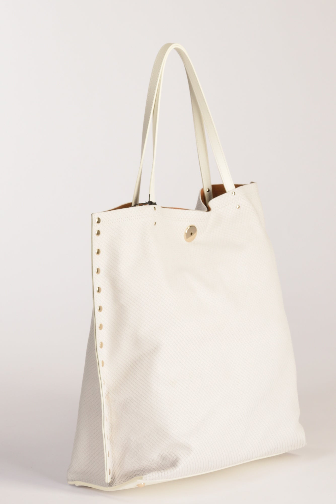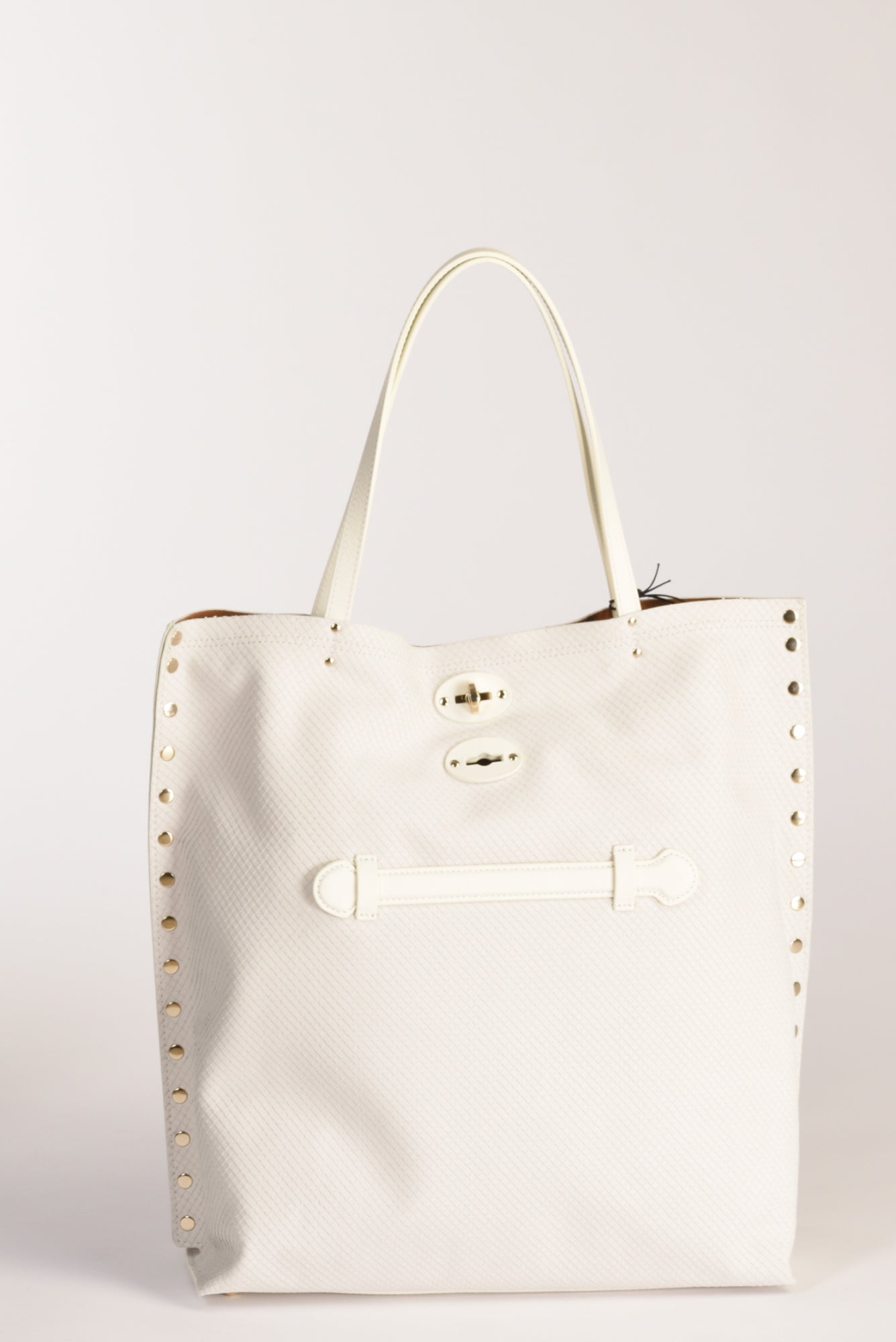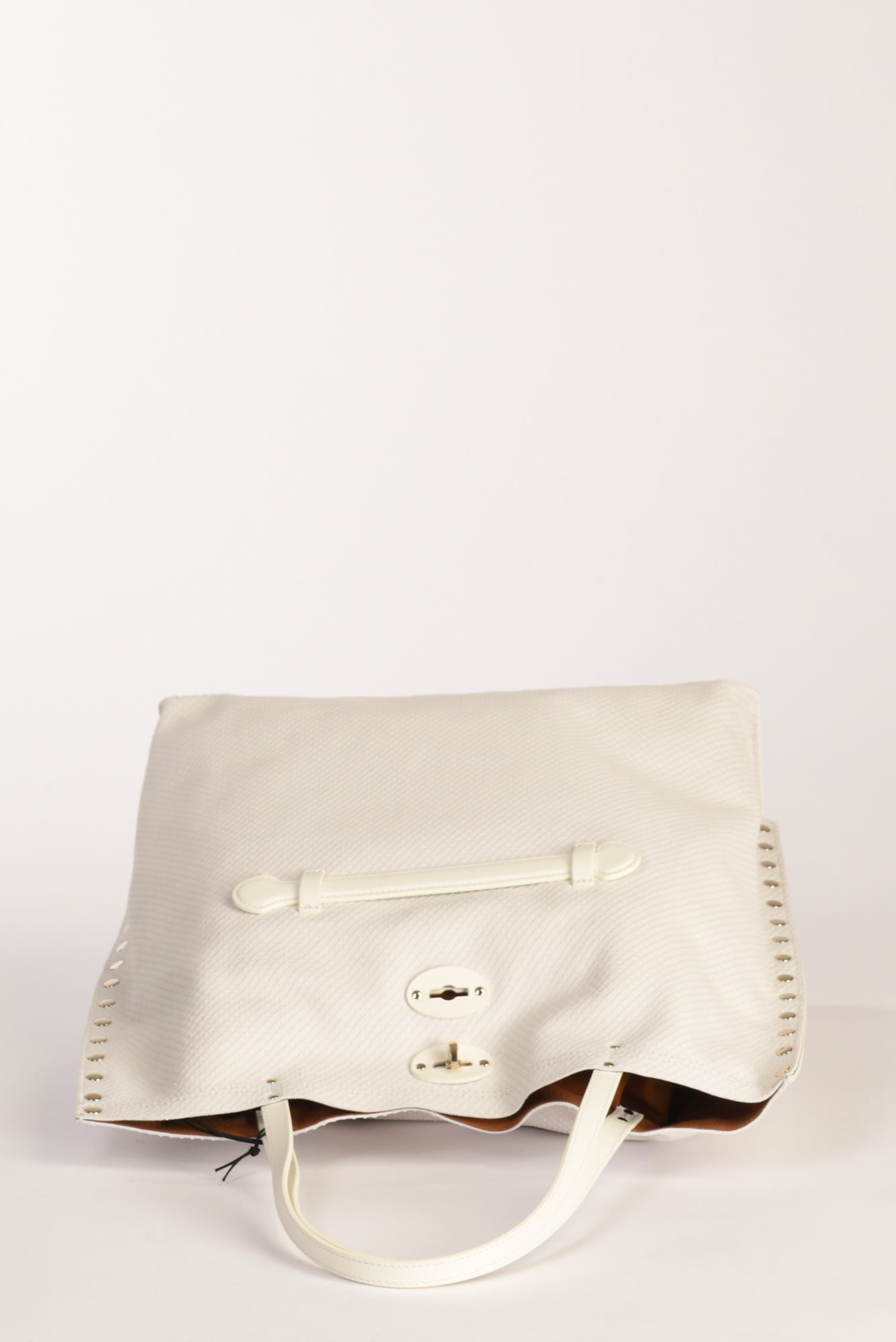 Borsa A Spalla Sfoderata, Fondo Semirigido Con Piedini, Borchie Laterali, Chiusa Da Iconico Girello, Dotata Di Tasca Interna Multiuso Chiusa Da Zip, Parte Frontale Decorata Da Fascietta In Pelle Fissa, Realizzata In Nappa Plonge' E Lavorata Con Oli Di Lino,composizione 100 Pelle Bovina, Interno 100 Poliestere, Made In Romania