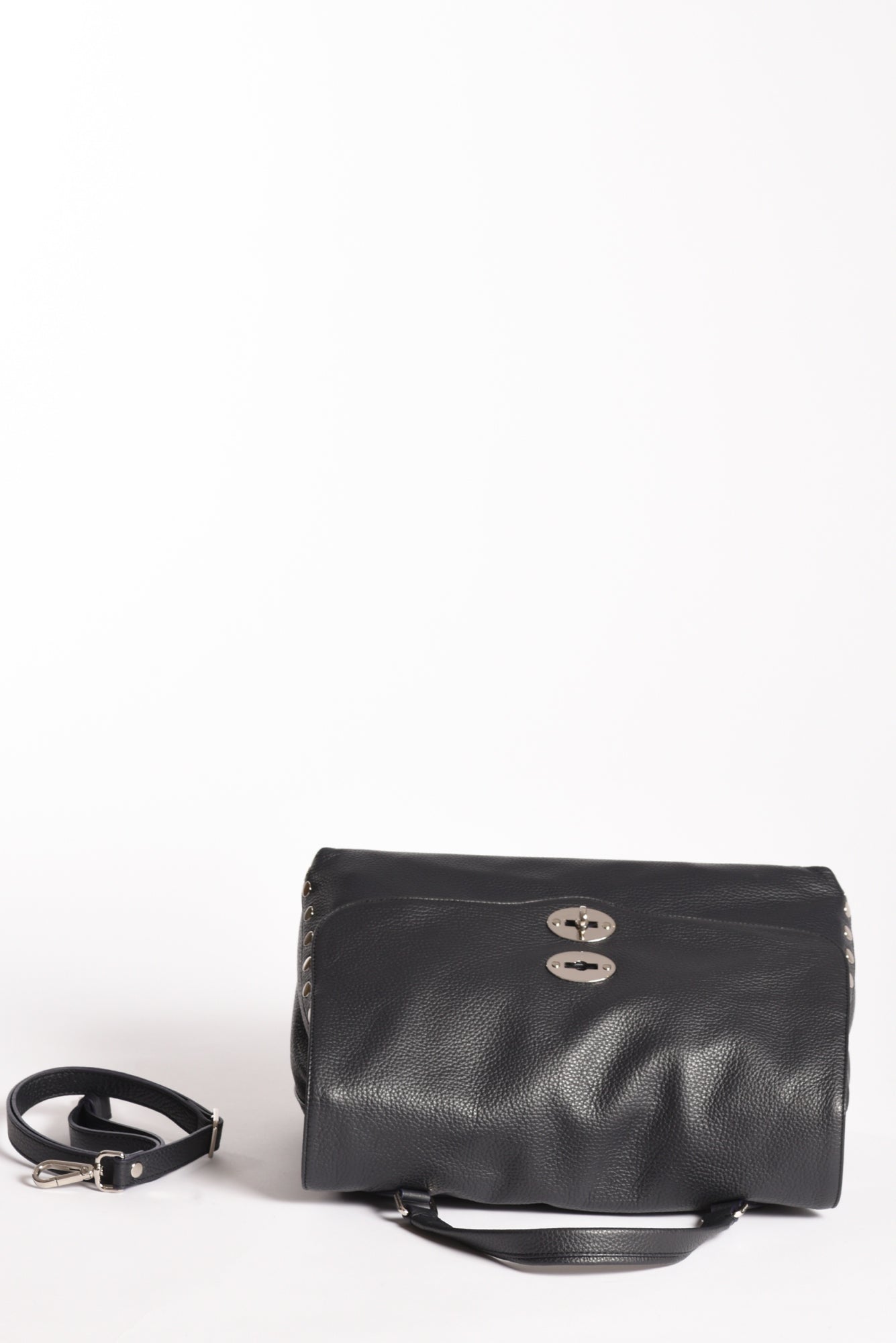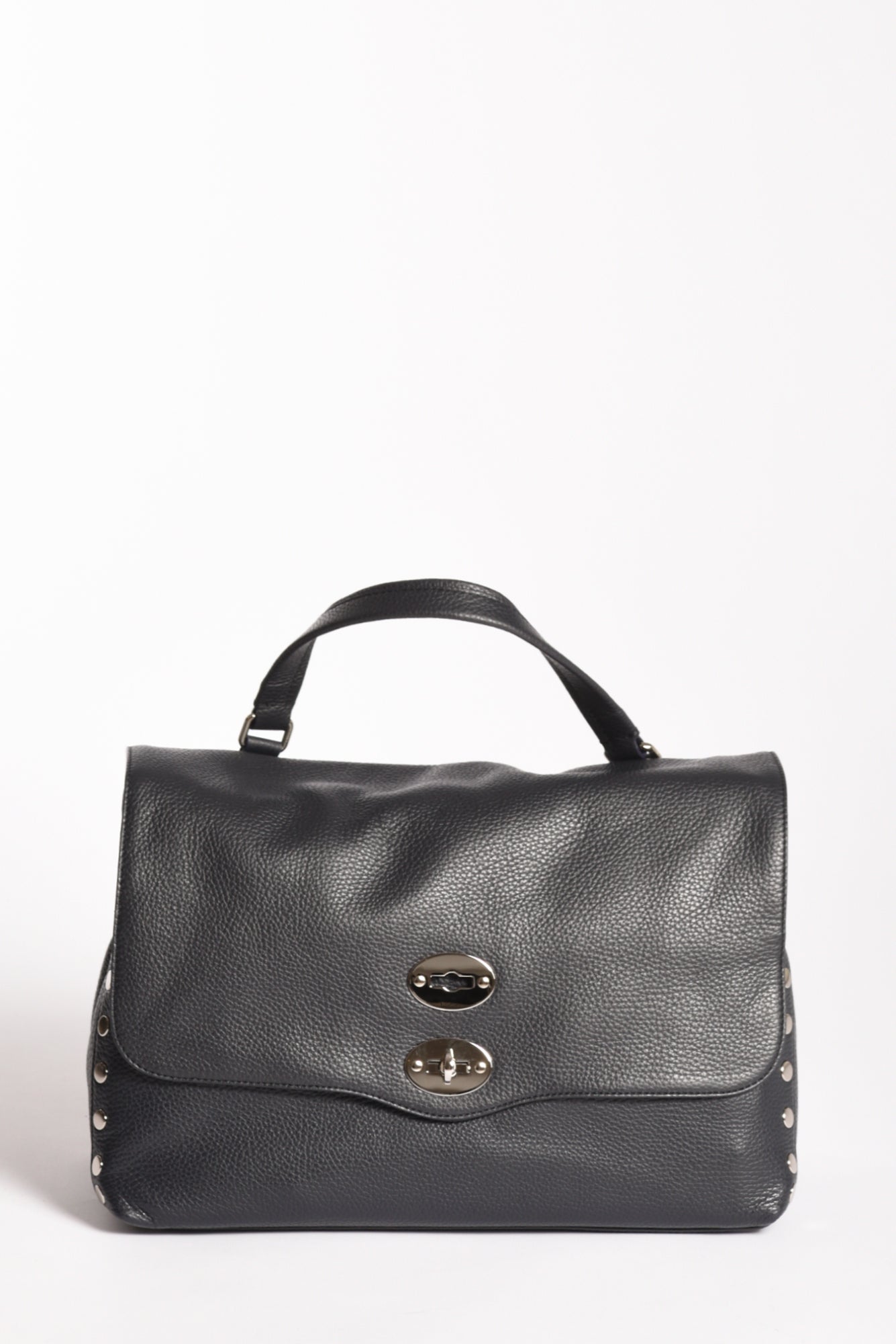 Borsa A Mano Modello Postina, Foderata, Chiusura A Girello Con Patta Battente, Tracolla Regolabile Ed Amovibile, Lavorazione Pelle Martellata, Internamente Presenta Due Tasche Multiuso Di Cui Una Zippata E Due Scomparti, Borchie A Vista Metalliche, Fondo Con Piedini, Composizione 100 Pelle Di Vitello, Made In Italy, Misure Cm 35,5x24x17, Luce Manico 11